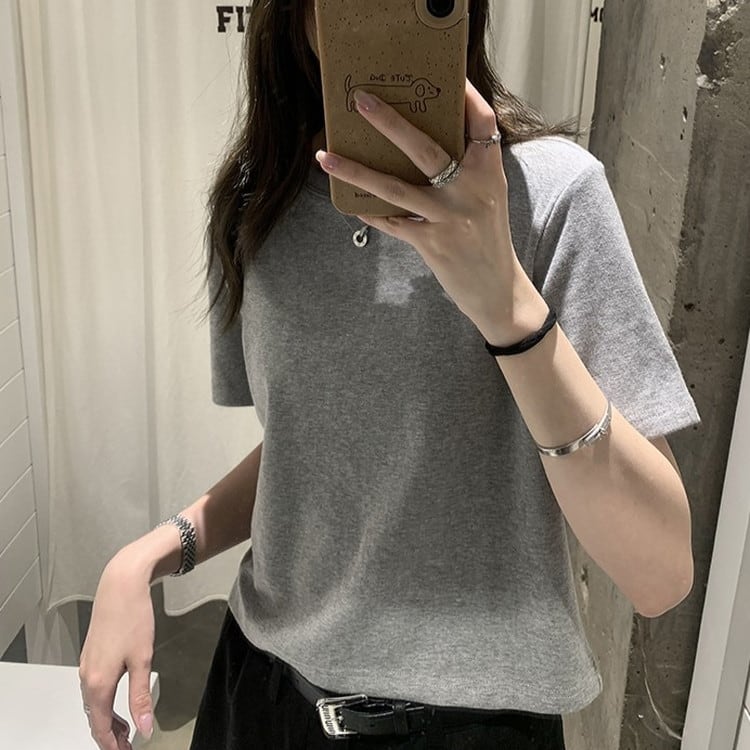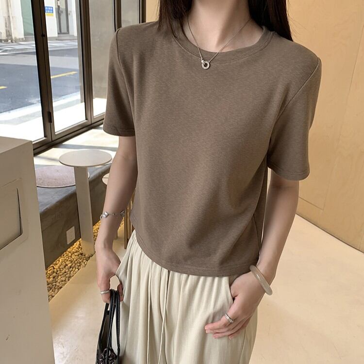 トレンドのクルーネックベーシックコンパクトTシャツです。