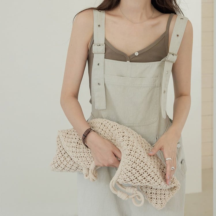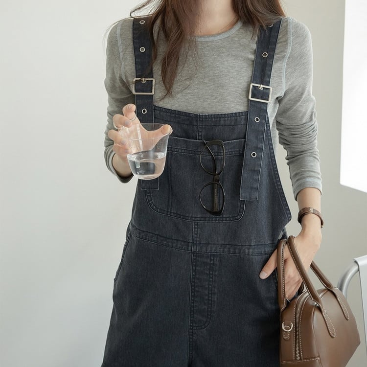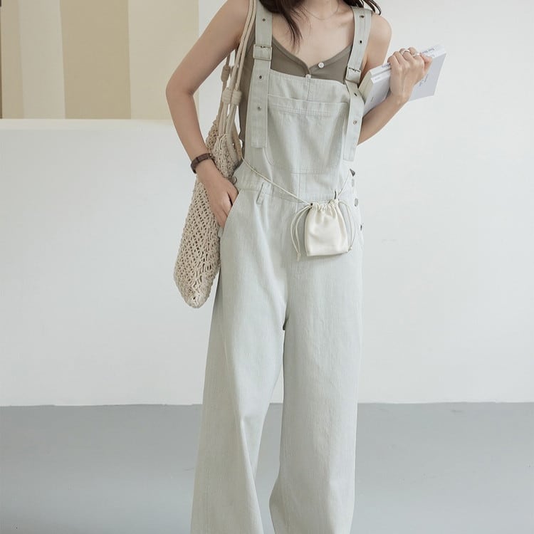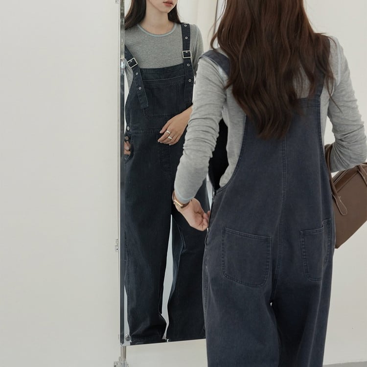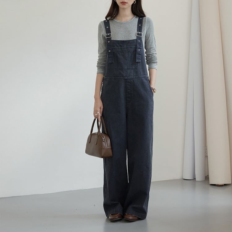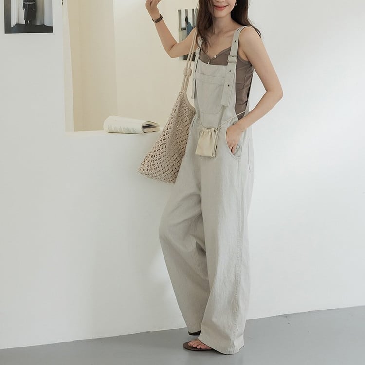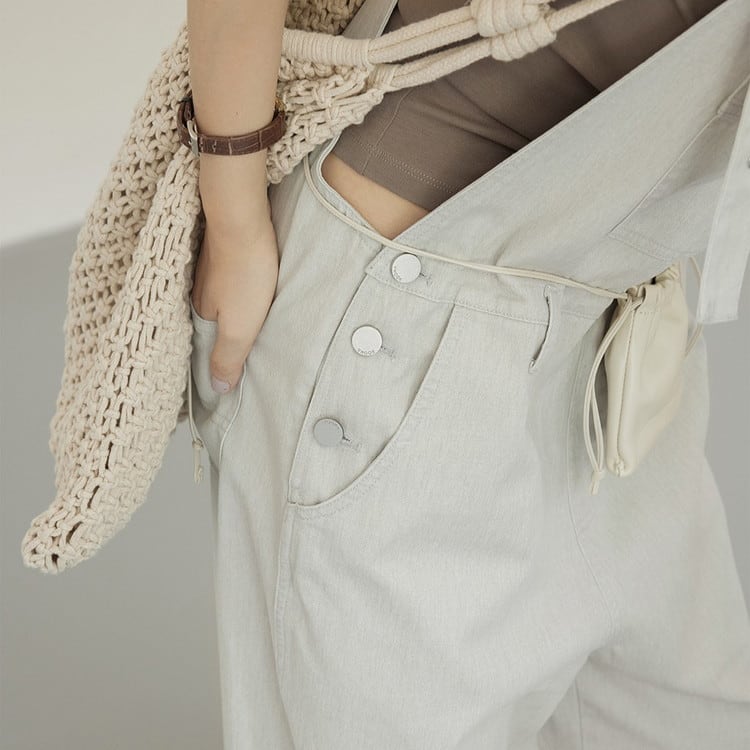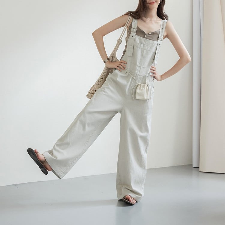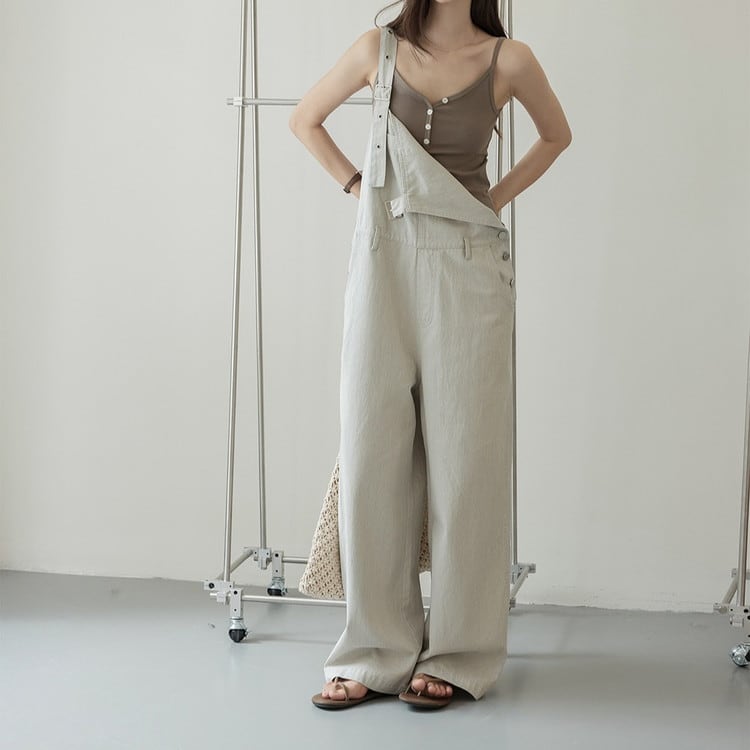 ナチュラルな風合いのベルトストラップワイドサロペットです。