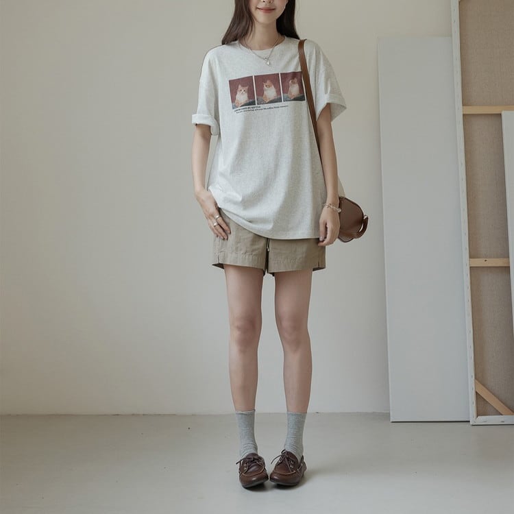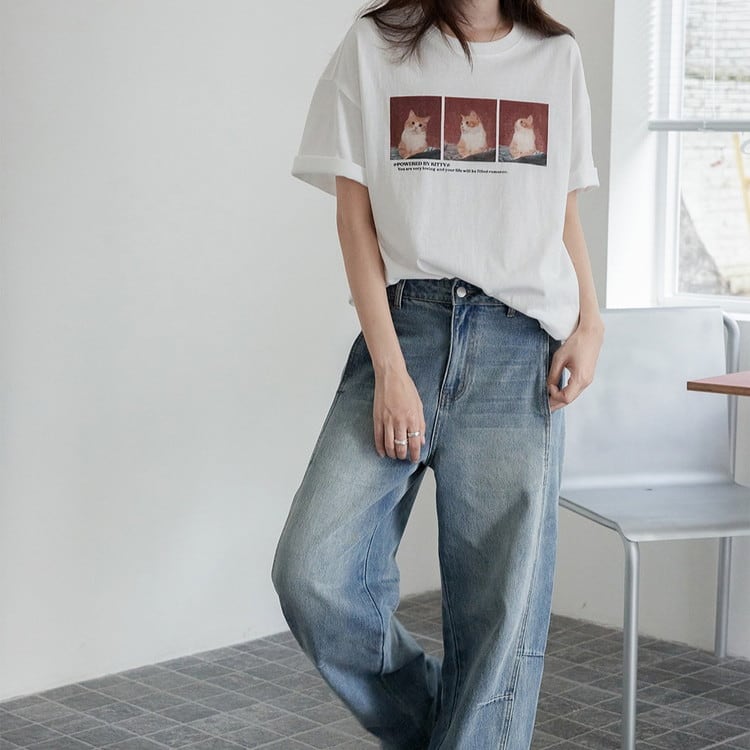 猫好きにはたまらないクルーネックキャットプリントTシャツです。