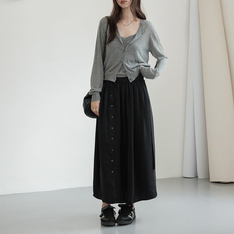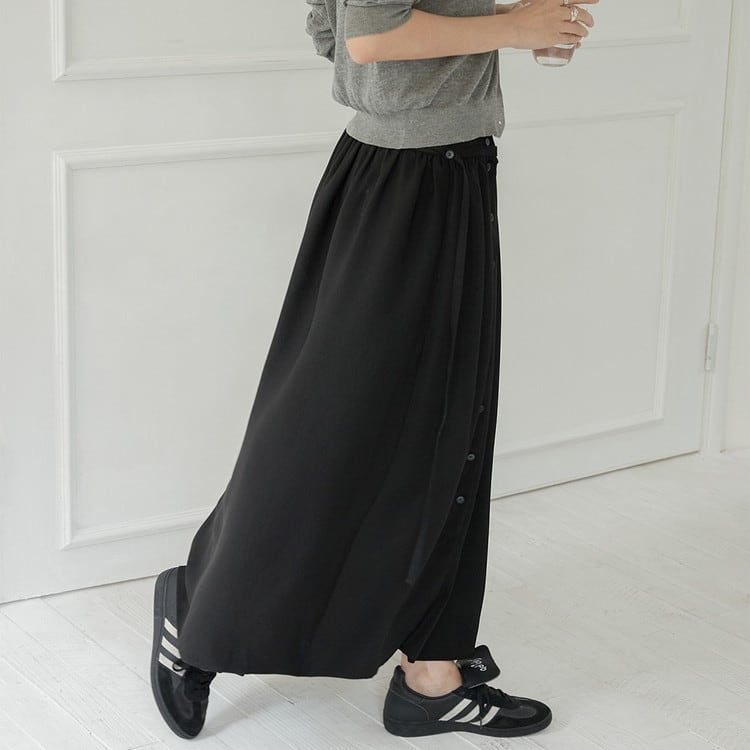 たっぷりとしたボリューム感のあるサイドボタンプリーツロングスカートです。
