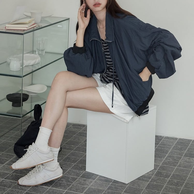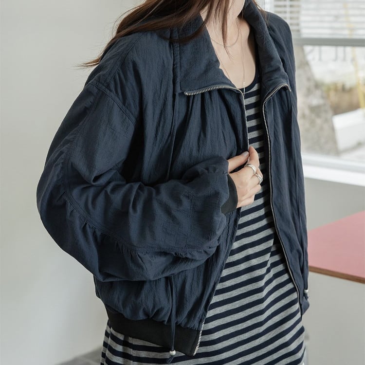 ランタンスリーブフルジップショートジャケット 2color [am03268]