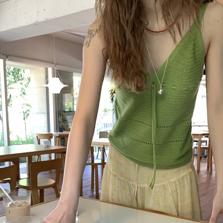 Vネックリボンニットキャミソール 2color [am03274]
