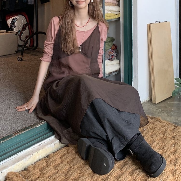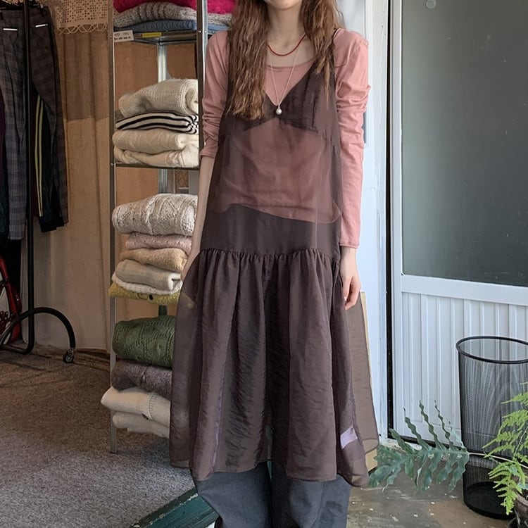 こっくりとした秋カラーのシアーロングキャミビスチェです。