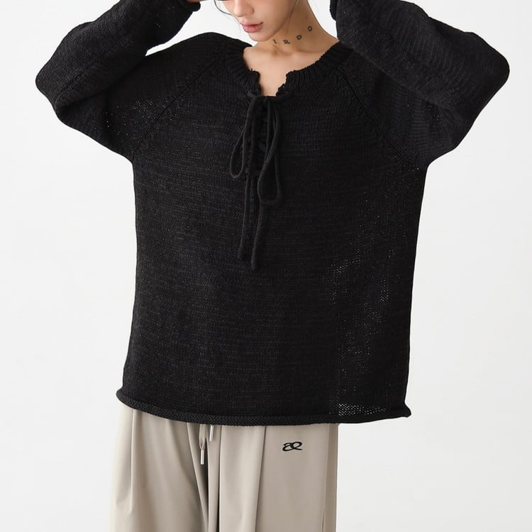 程よい透け感とフロントのレースアップの開け具合でこなれた雰囲気に◎