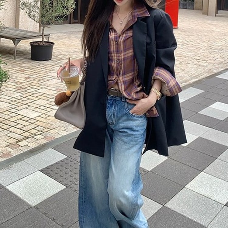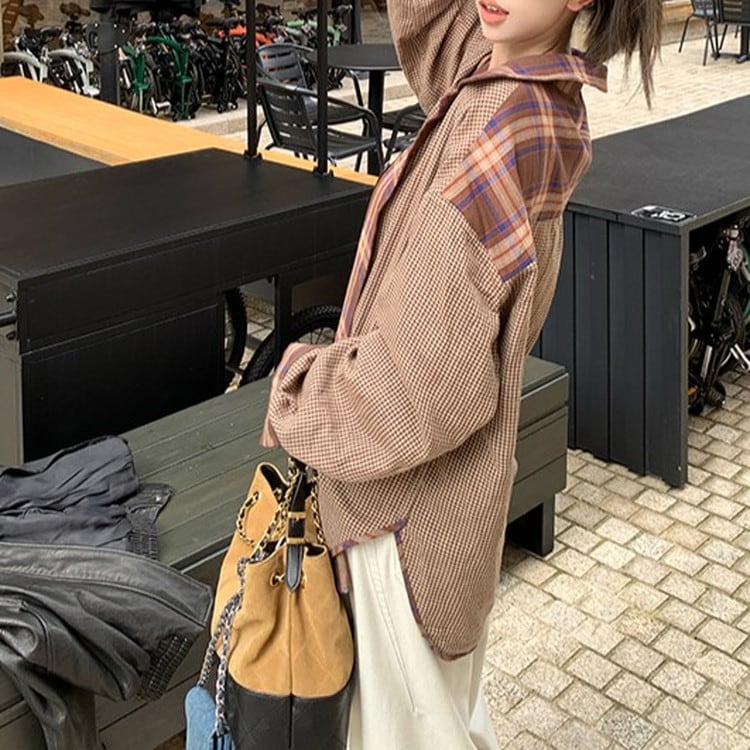 オーバーサイズブラウンチェックシャツ [am03280]