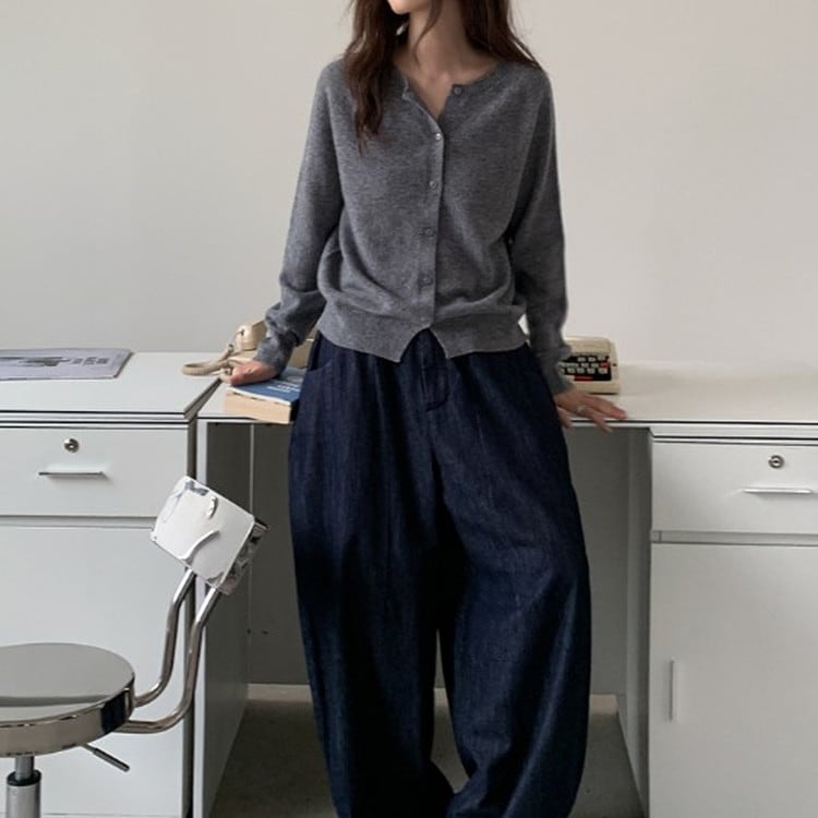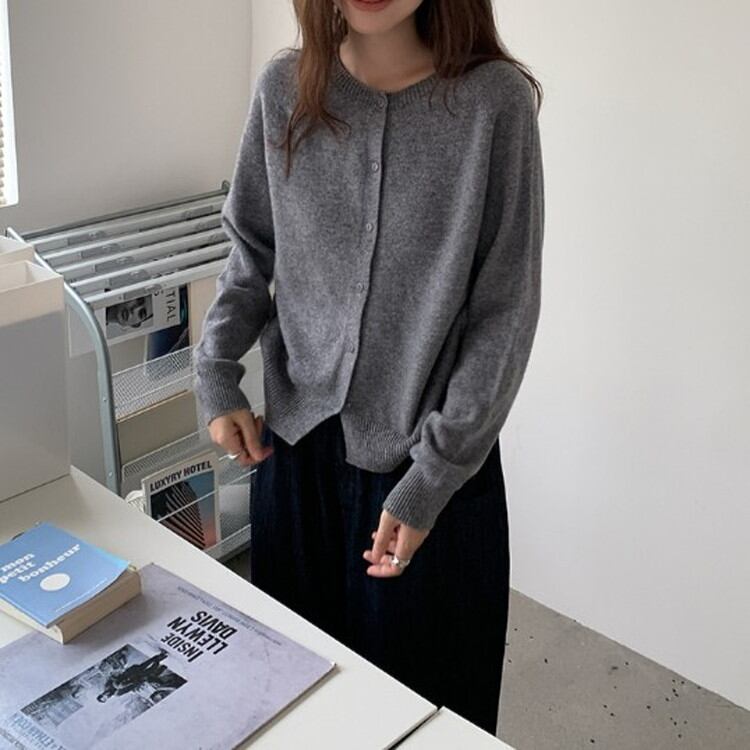 クルーネックベーシックニットカーディガン 2color [am03284]