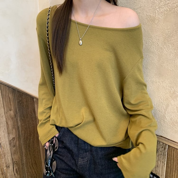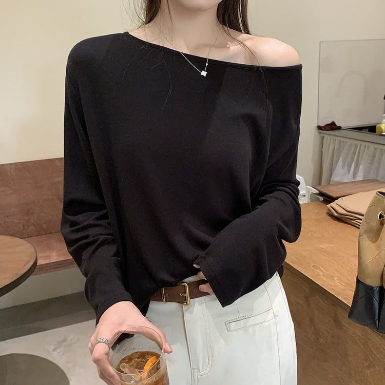 ワイドネックデザインによりヘルシーな肌見せで女性らしい印象に◎