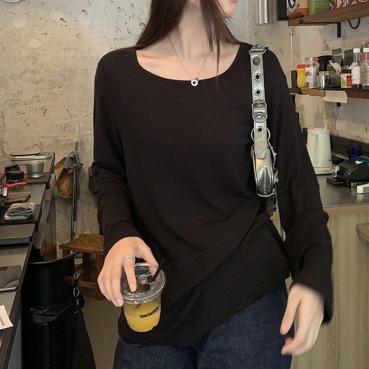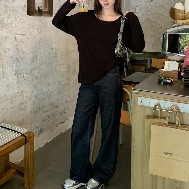 柔らかな生地感のワイドネックソフトロングTシャツです。