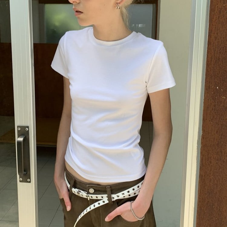 スタイルアップが叶うスリムフィットベーシックTシャツです。