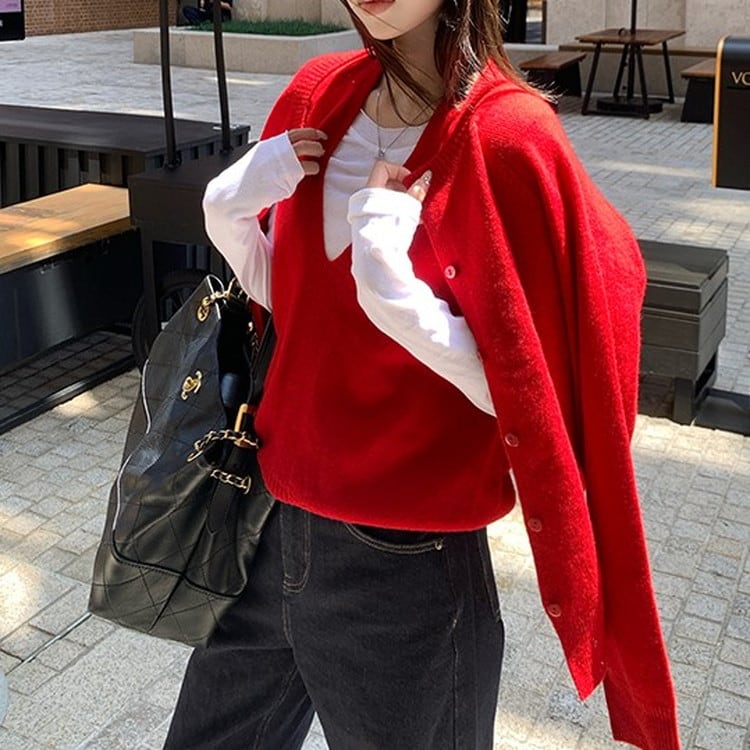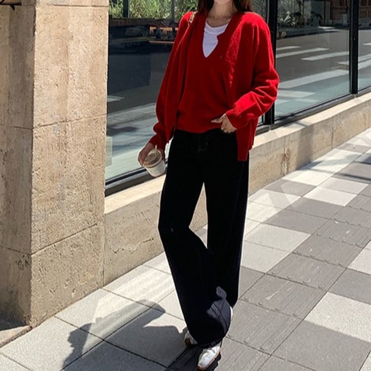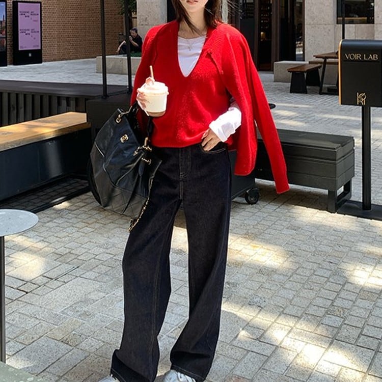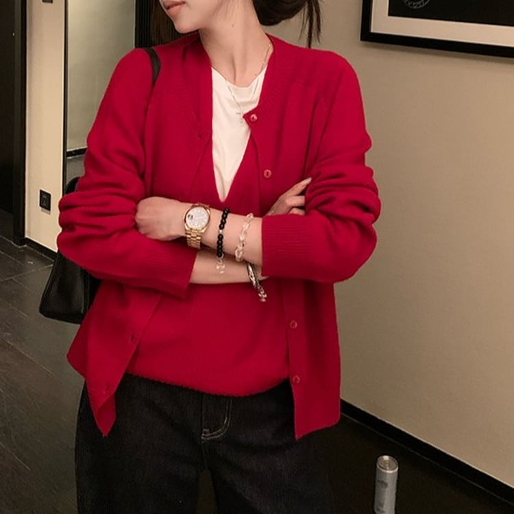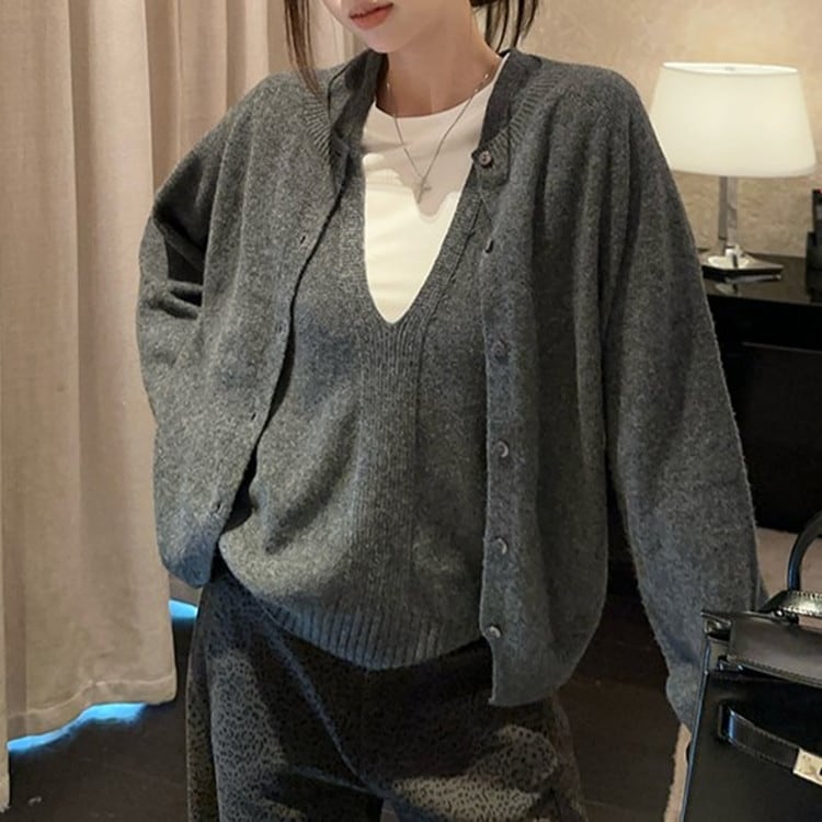 Tシャツとレイヤードしたり、クルーネックベーシックニットカーディガン[am03303]とセットアップとして着こなすのもオススメです。