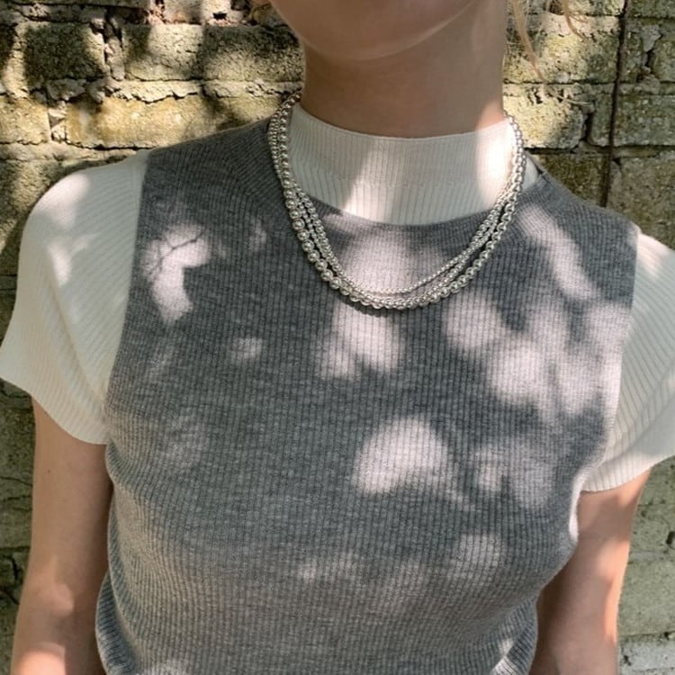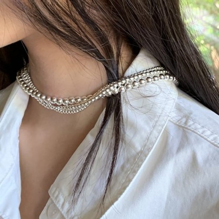 主張し過ぎない程よいボリューム感のメタルボール3連ネックレスです。