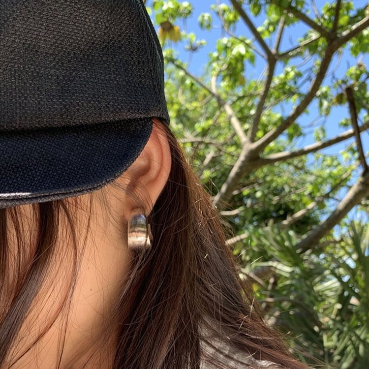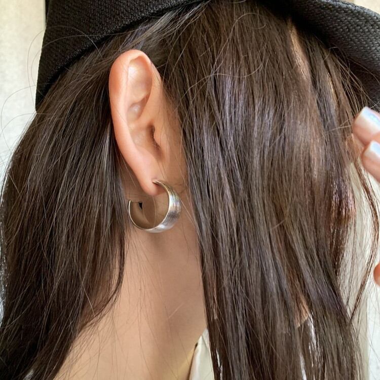 存在感のあるシルバーワイドサークルピアスです。