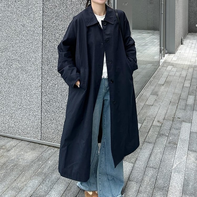 高級感のあるオーバーサイズネイビーステンカラーコートです。