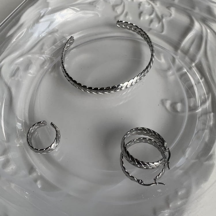 ヘリンボーンフープピアス[B518]、ヘリンボーンオープンリング[B519]とセットで着用するのもオススメです。