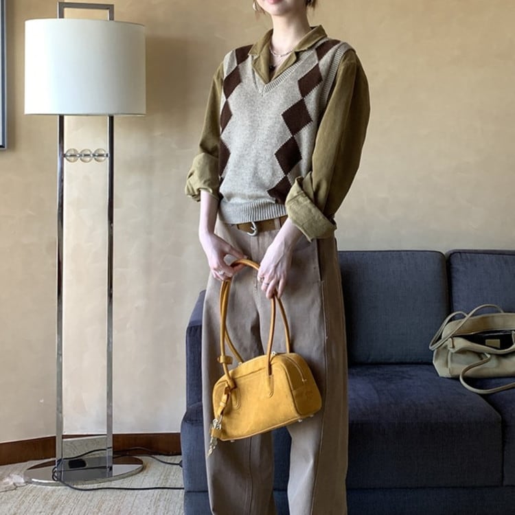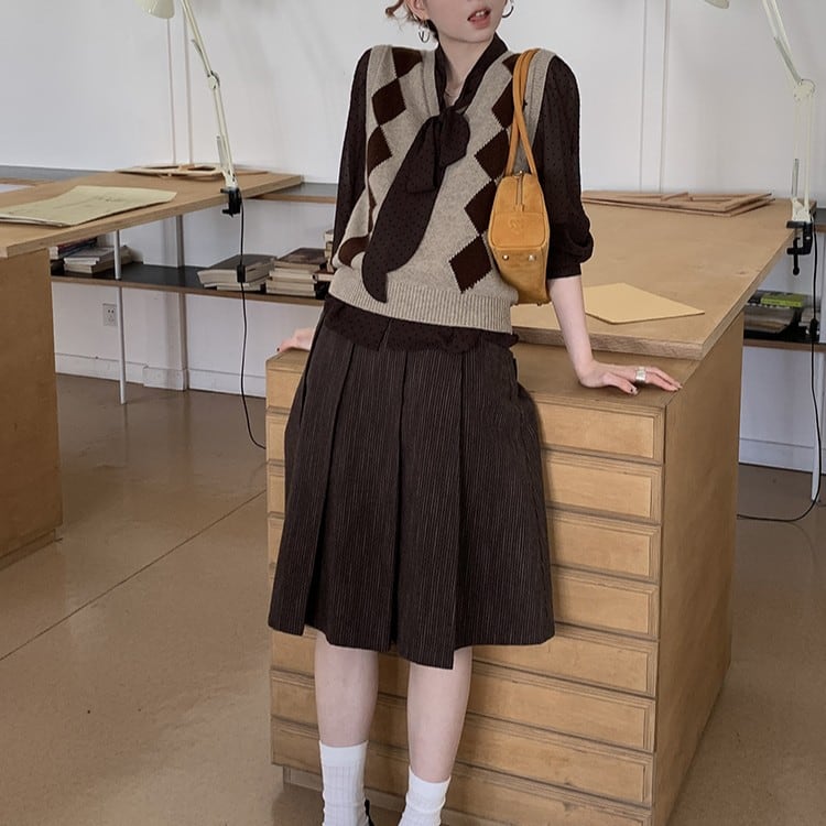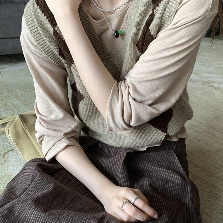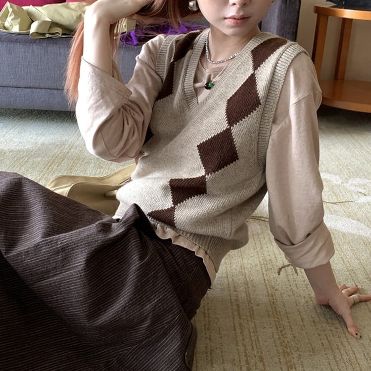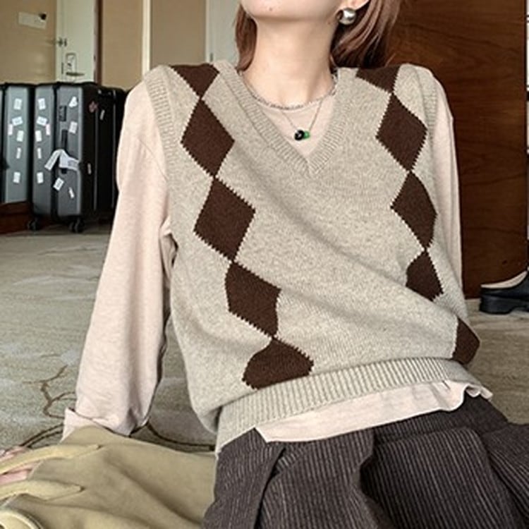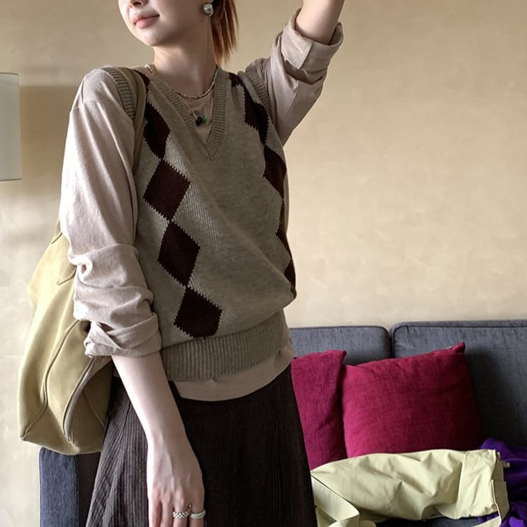 Vネックアーガイルニットベスト [am03322]