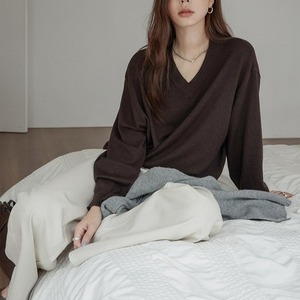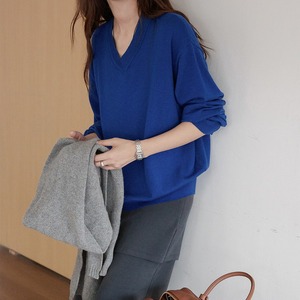 ルーズフィットVネックニットプルオーバー 4color [am03326]