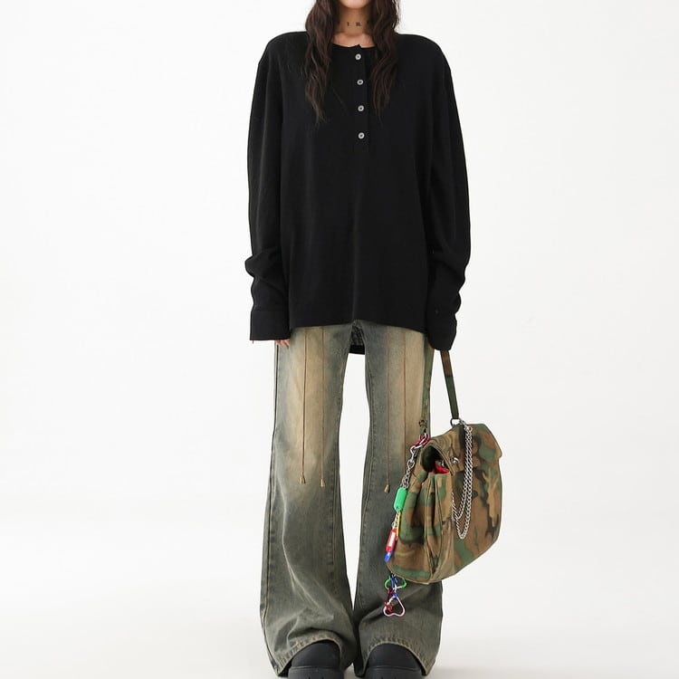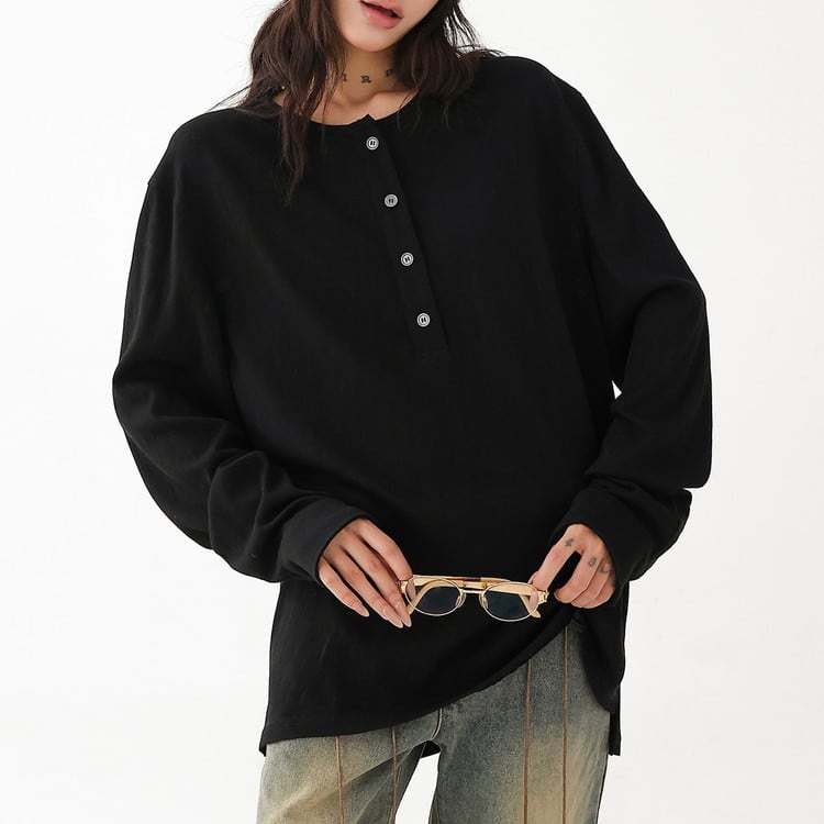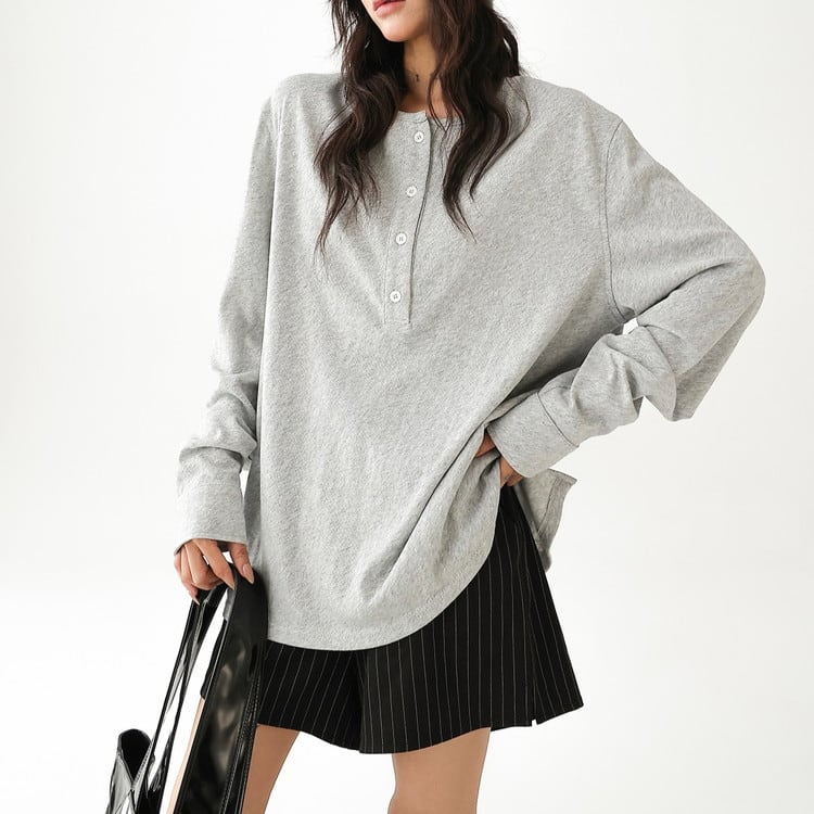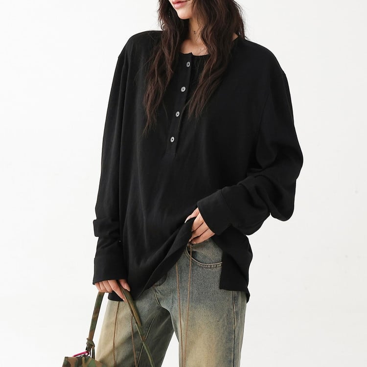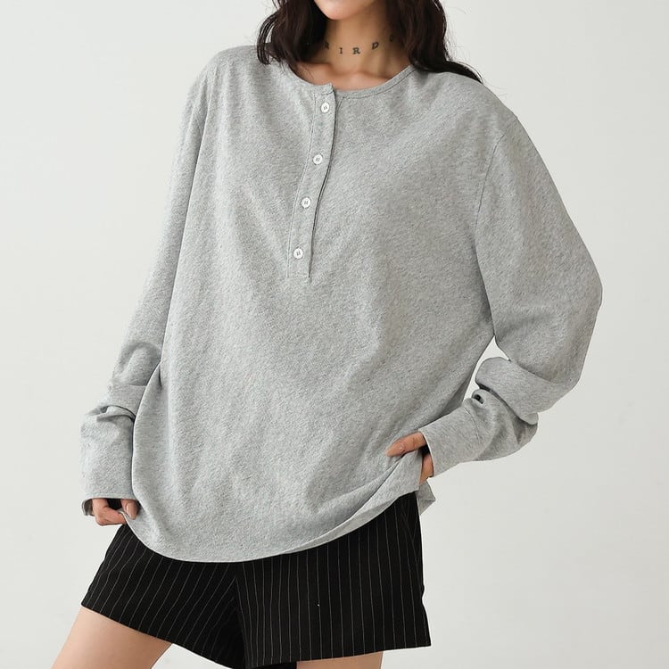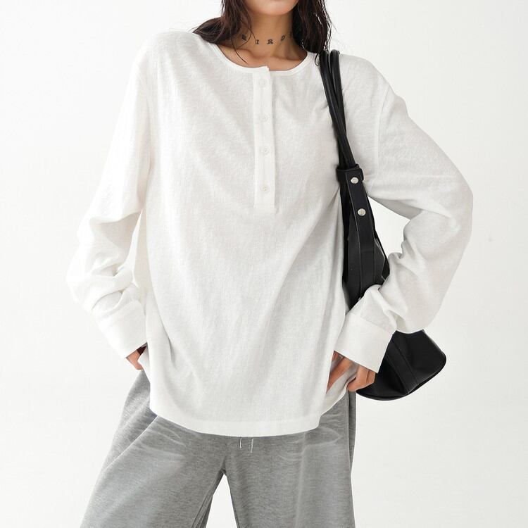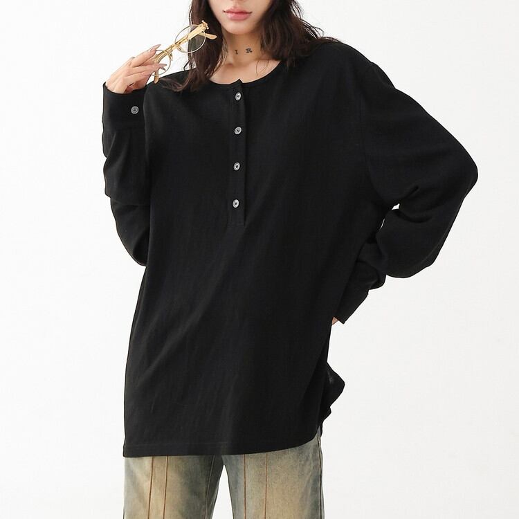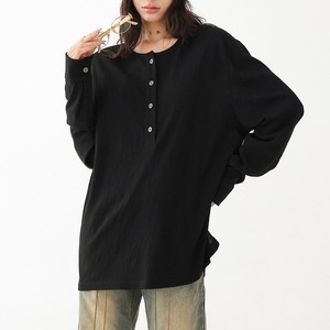 一枚は持っておきたいヘンリーネックベーシックロングTシャツです。