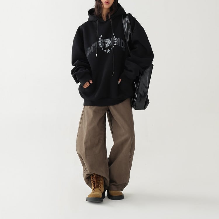 オーバーサイズロゴスウェットフーディ 2color [am03342]