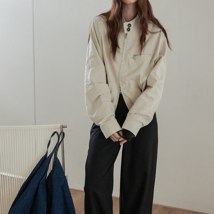 スタンドカラーフルジップショートブルゾン 2color [am03346]