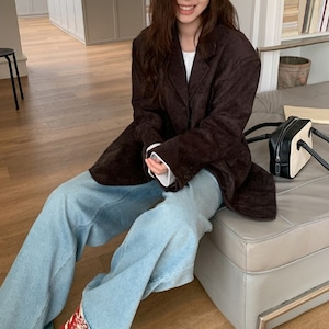 こっくり深みのあるカラーが魅力的なルーズフィットスウェードタッチジャケットです。