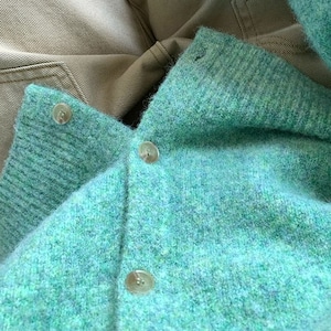 キーネックデザインがポイントのニットカーディガンです。