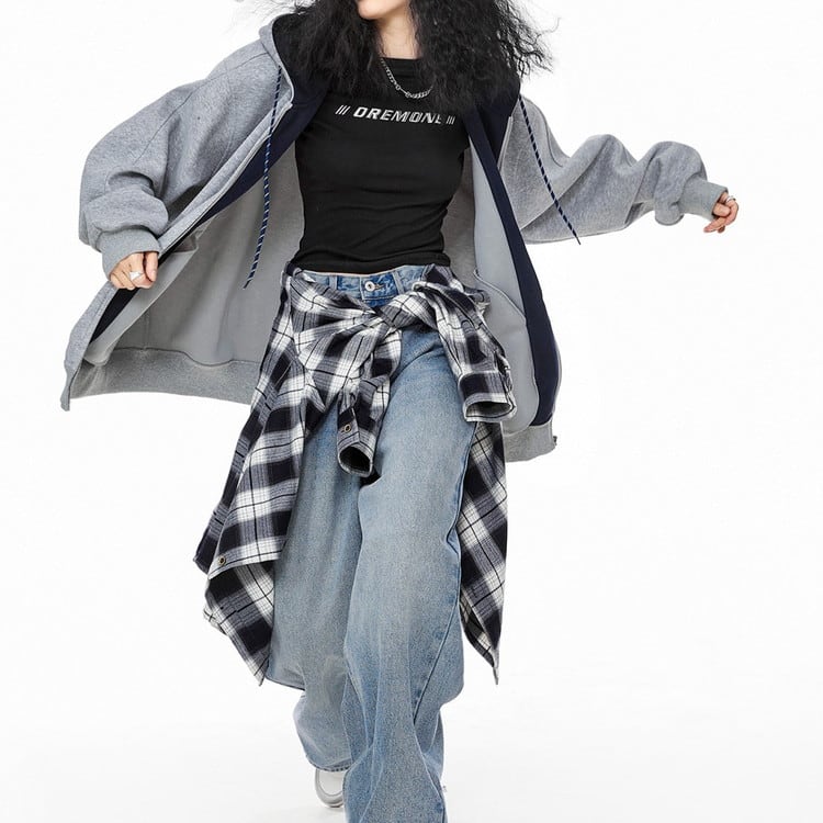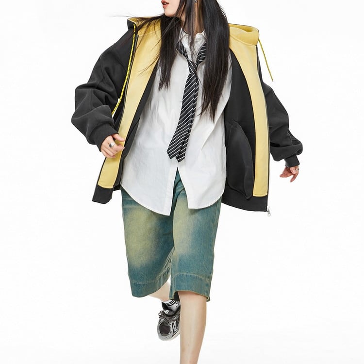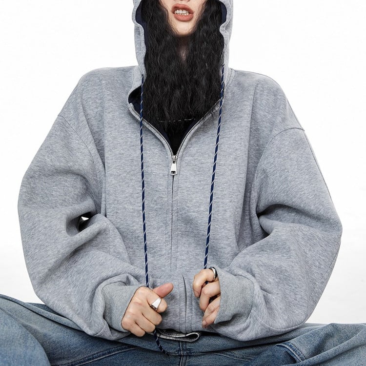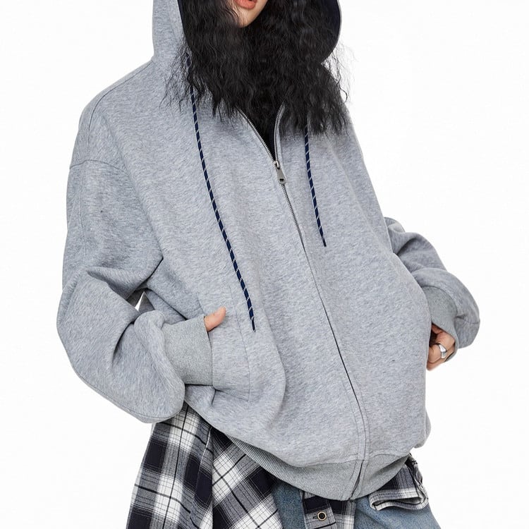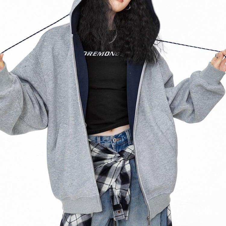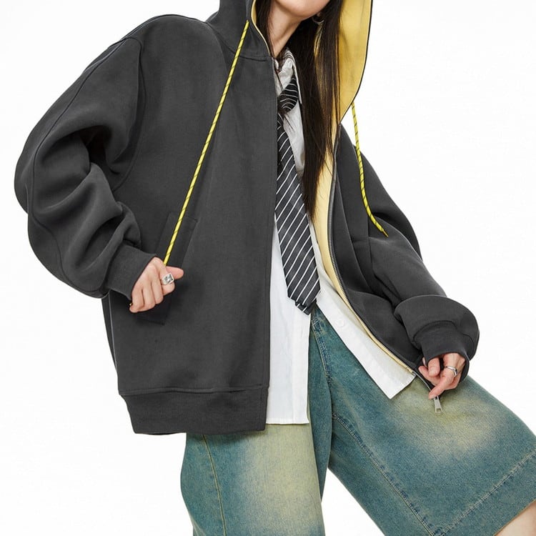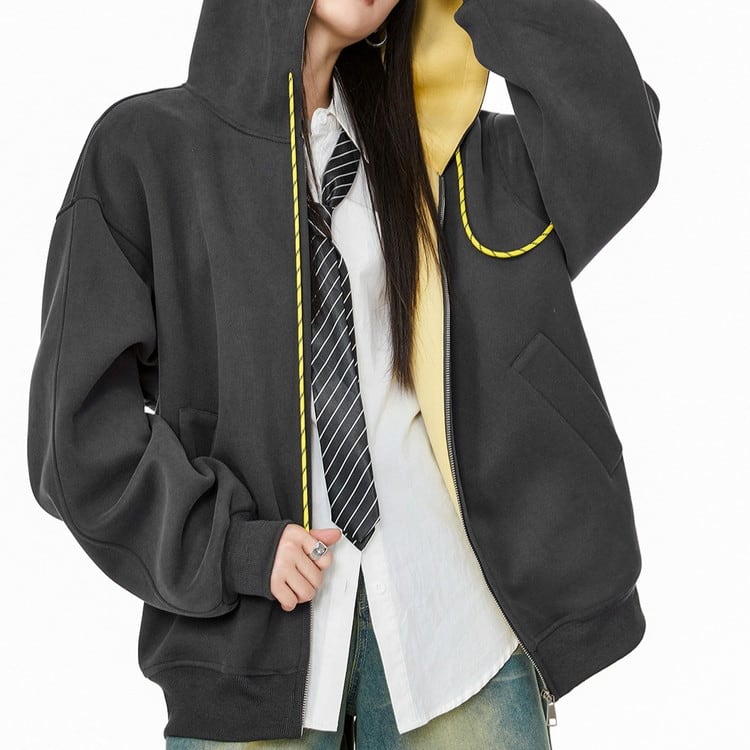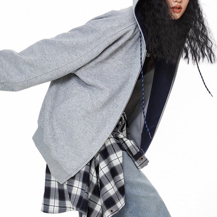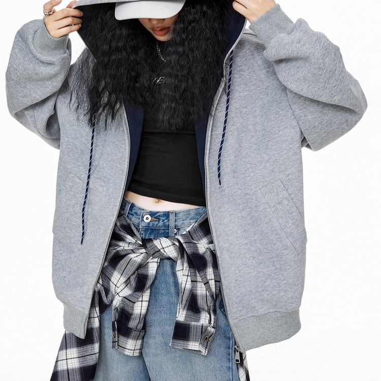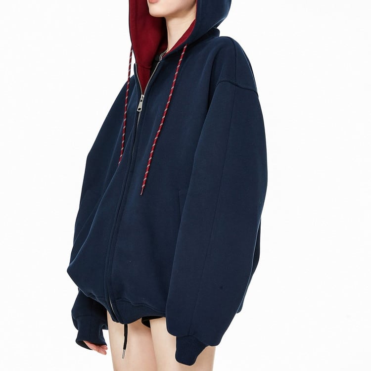 バイカラースウェットフルジップフーディ 3color [am03384]