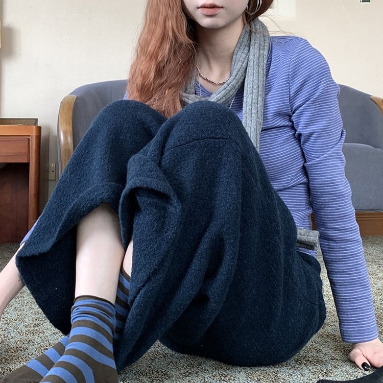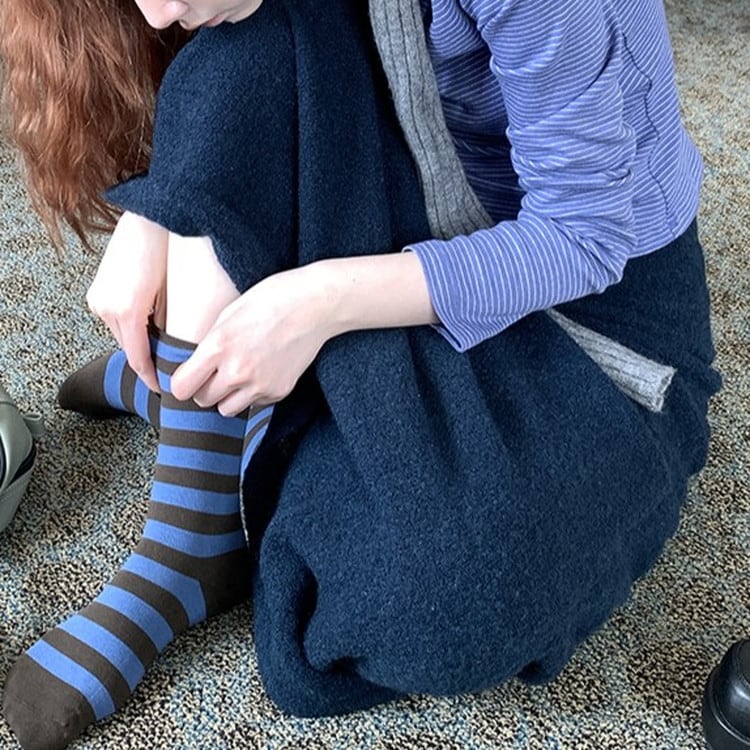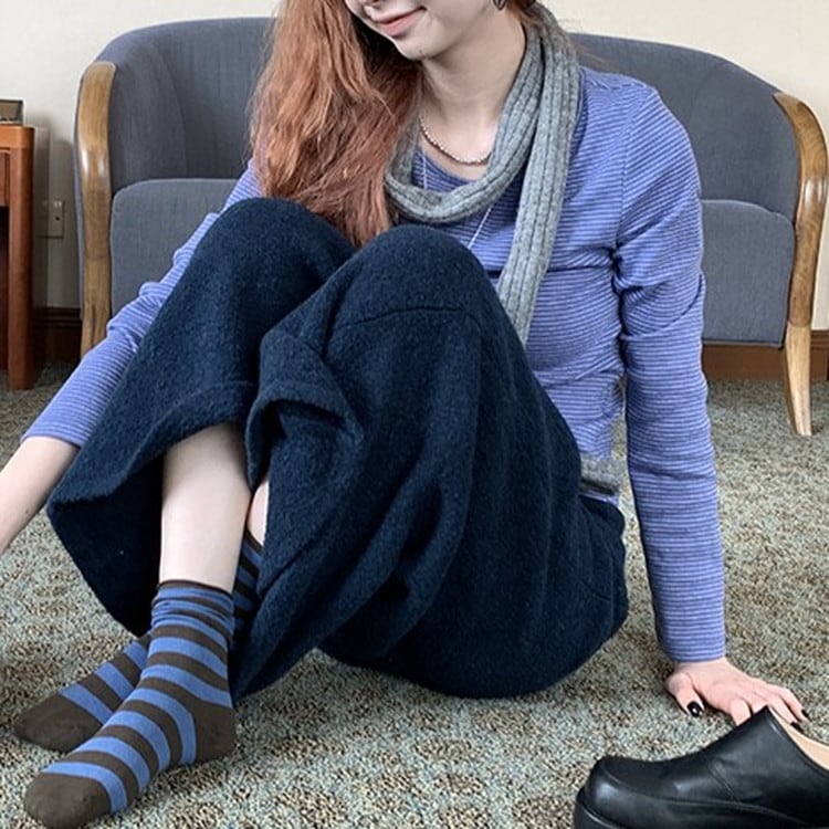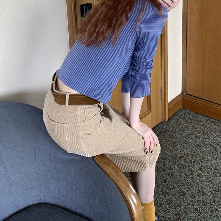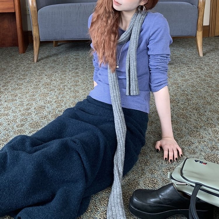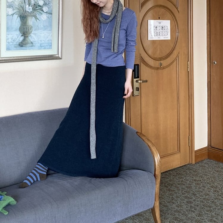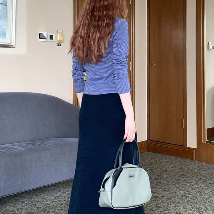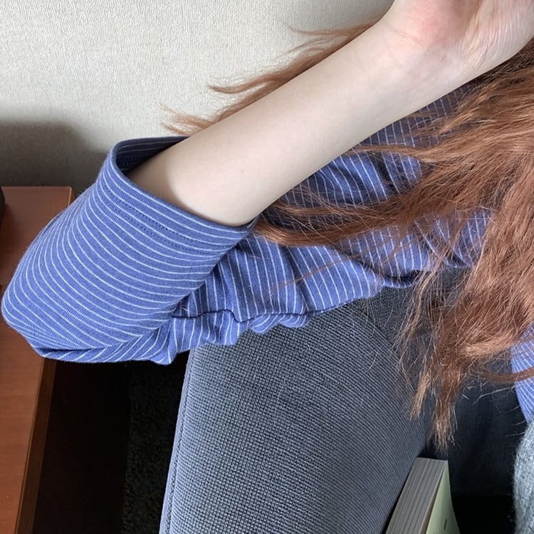 大人っぽいスリムフィット細ボーダーロングTシャツです。
