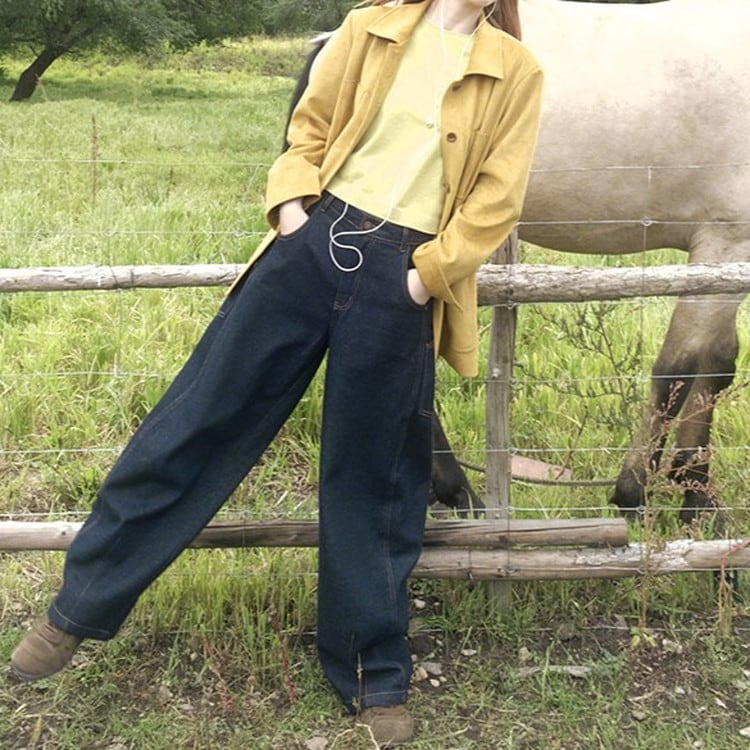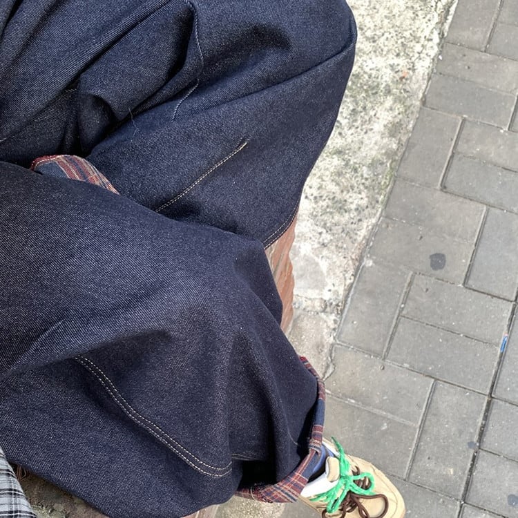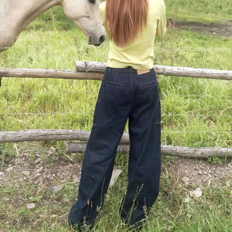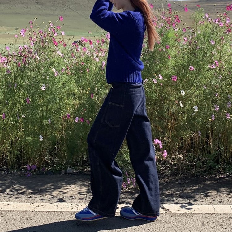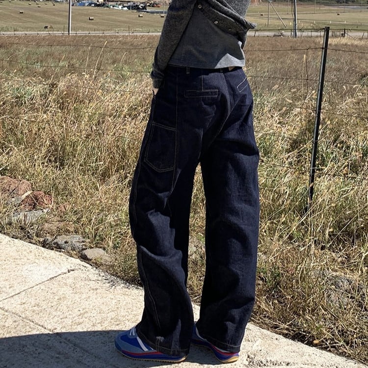 立体感のあるインディゴワイドカーブデニムパンツです。