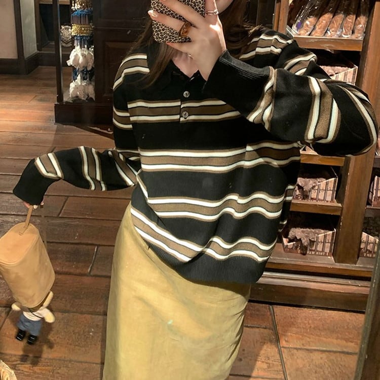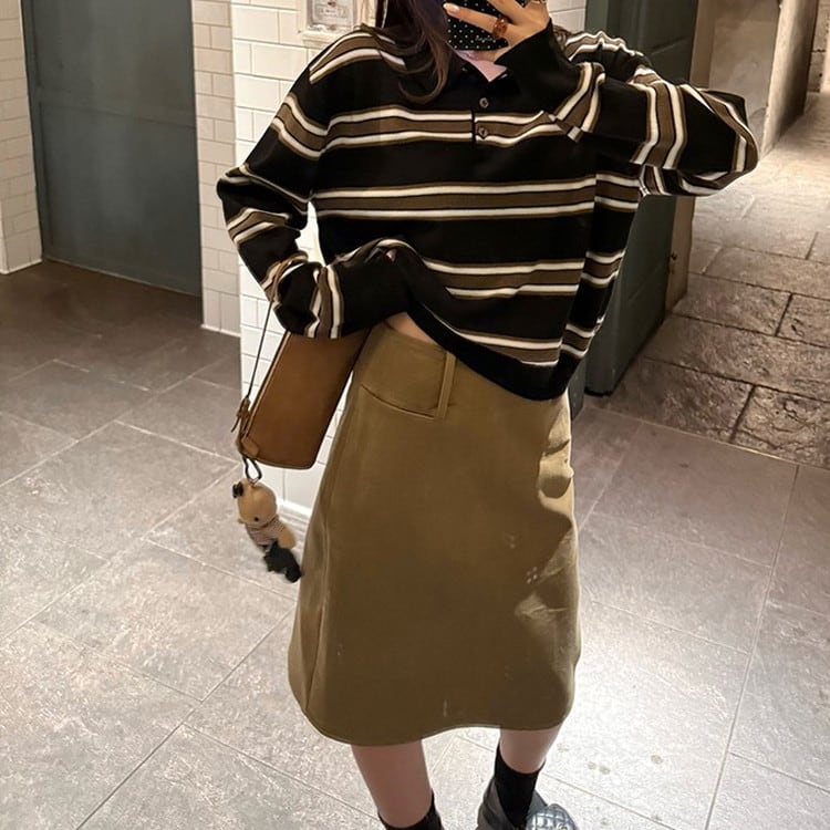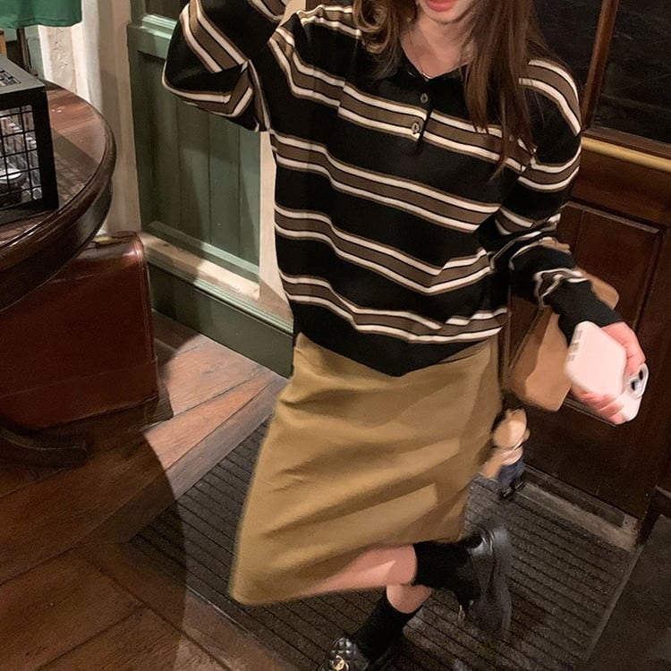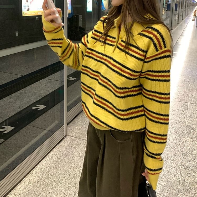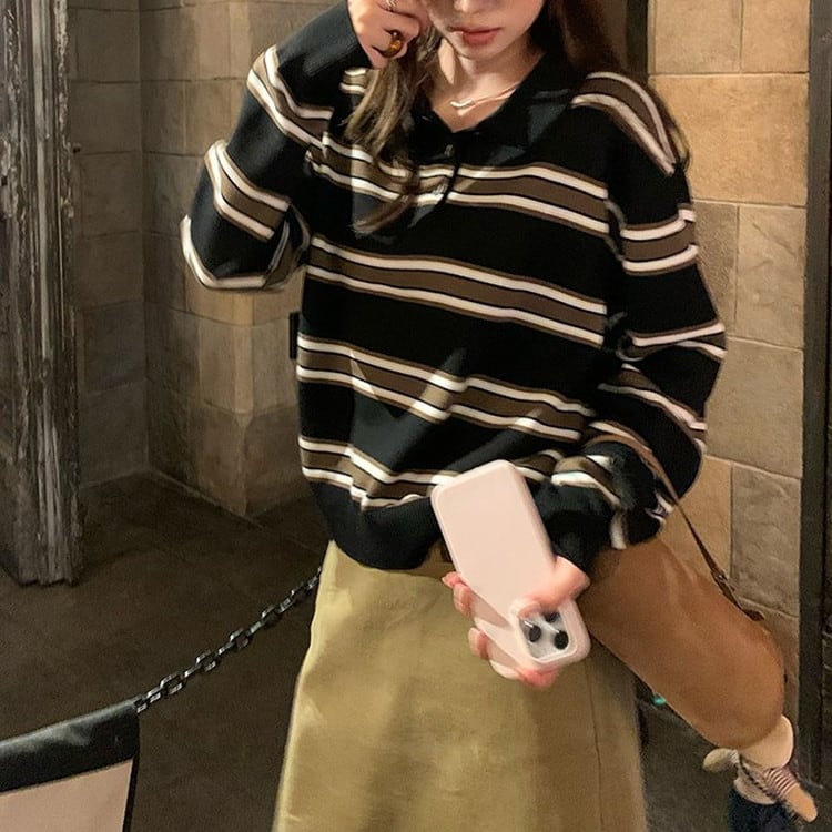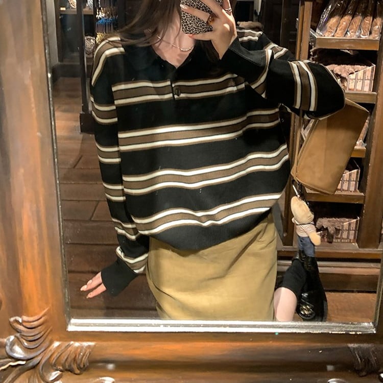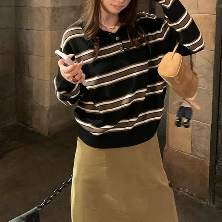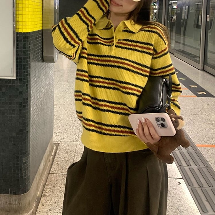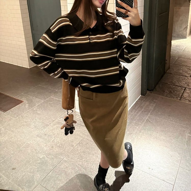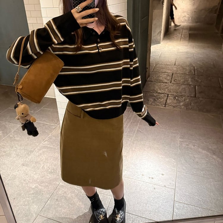 トレンドのポロ襟は閉じて上品に、開けて抜け感を演出しても◎