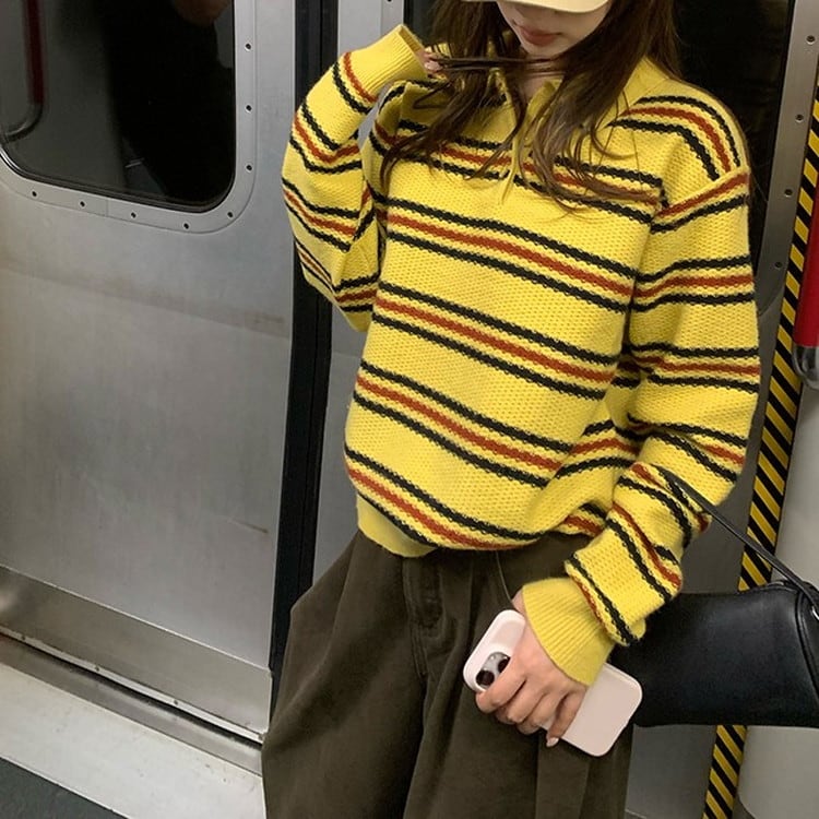着るだけで人目を惹くマルチボーダーデザインがおしゃれなアイテムです。