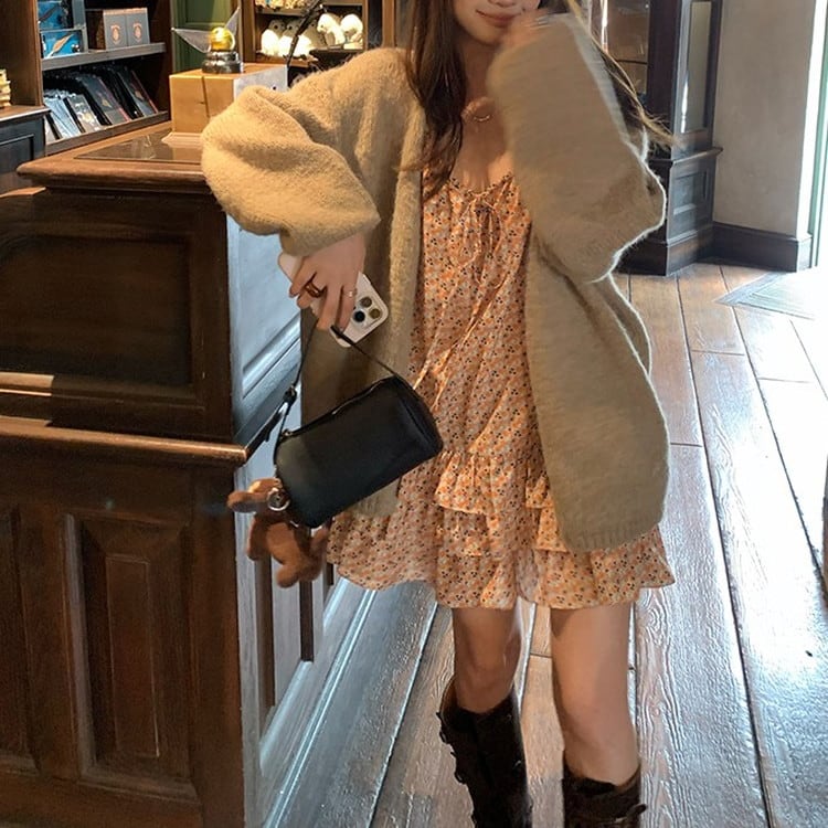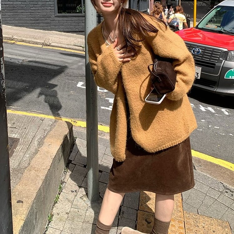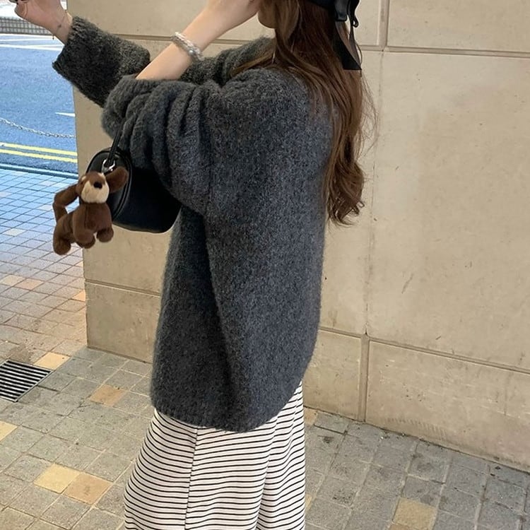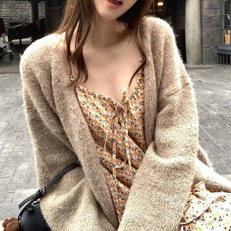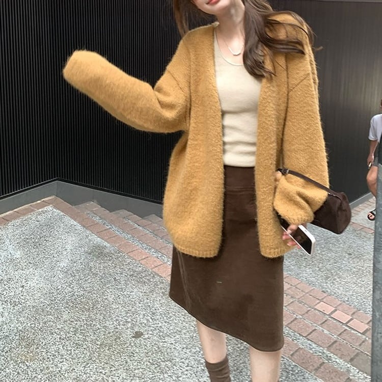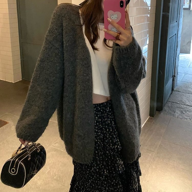 ルーズシルエットVネックニットカーディガン 3color [am03394]
