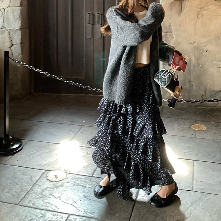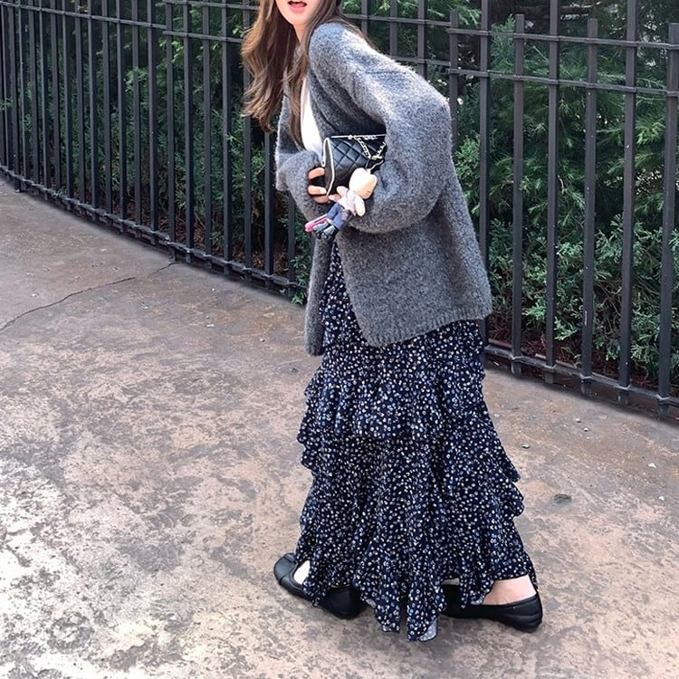 女性らしい印象のルーズシルエットVネックニットカーディガンです。