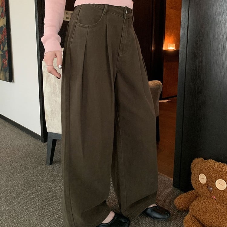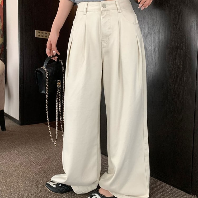 タックワイドカラーデニムパンツ 2color [am03396]