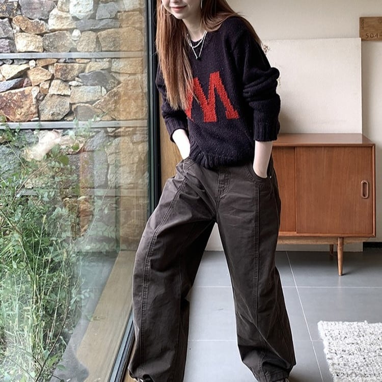 長めの袖が女性らしく、パンツにもスカートにも合わせやすいアイテムです。