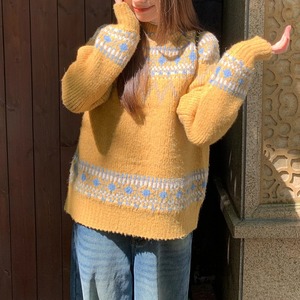 クルーネックフェアアイルニット 3color [am03406]