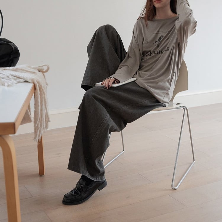 バックゴムウォッシュドデニムワイドパンツ 3color [am03412]