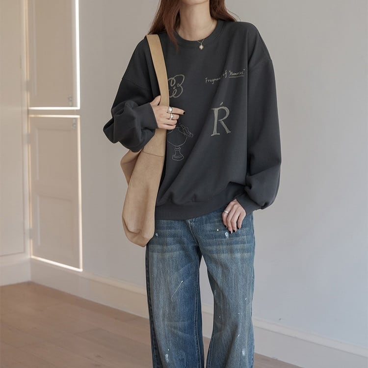 ルーズフィットプリントクルーネックスウェット 2color [am03413]