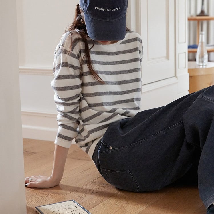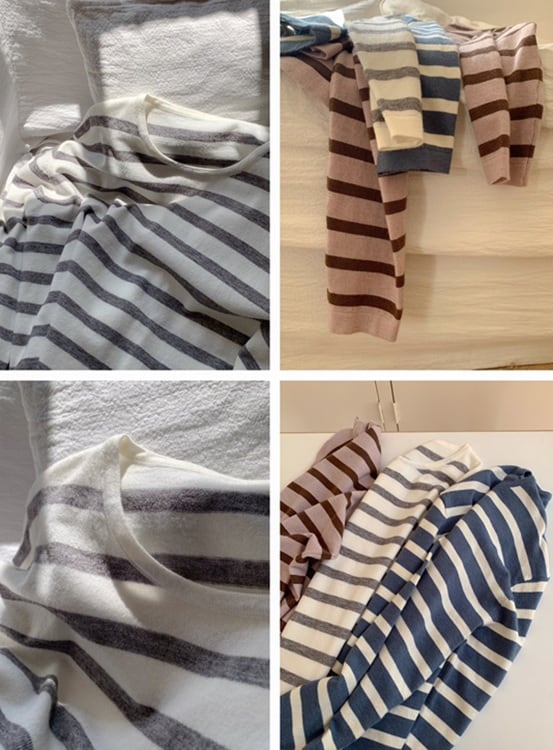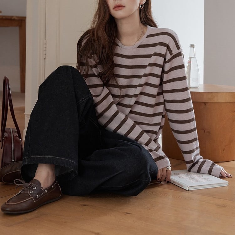 クルーネックボーダーニットプルオーバー 3color [am03416]