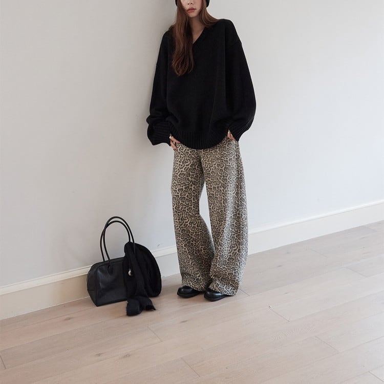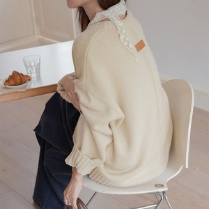 バックタグがアクセントのルーズシルエットVネックニットです。