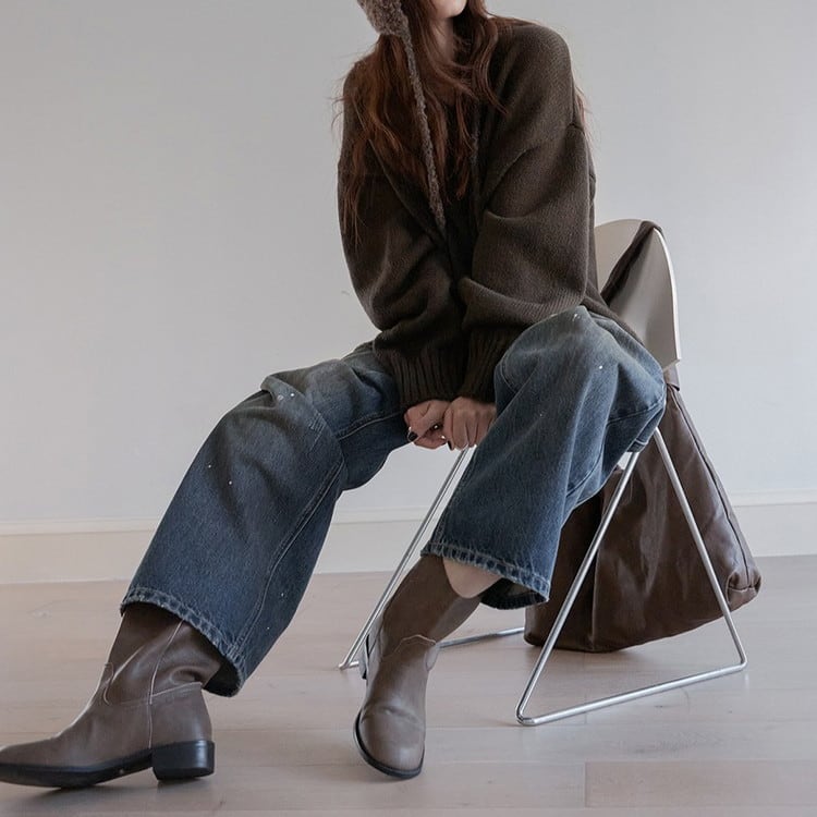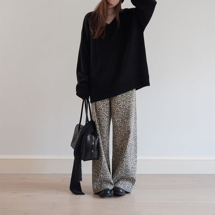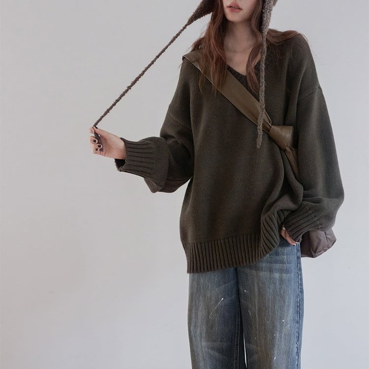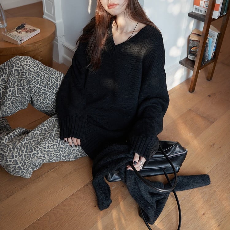 ルーズシルエットVネックニット 4color [am03417]