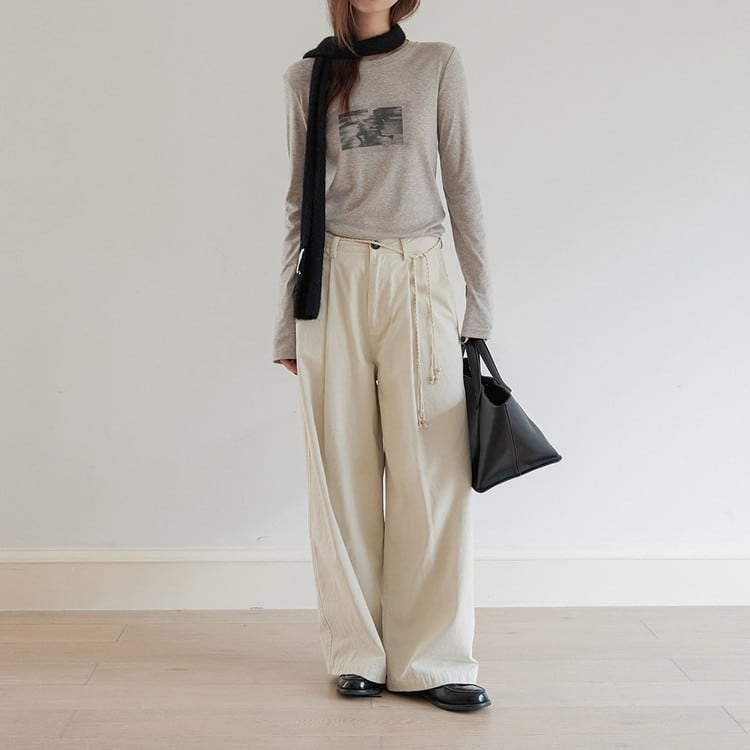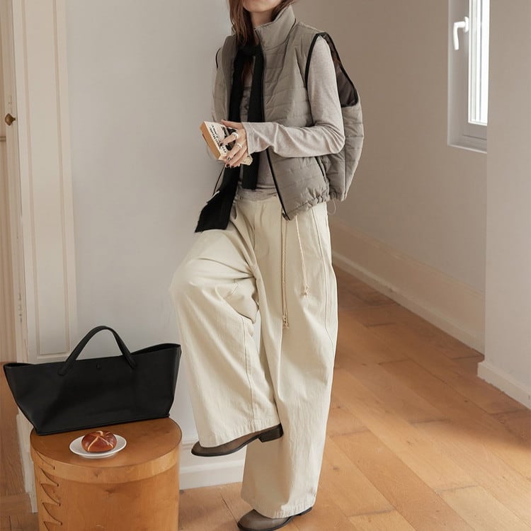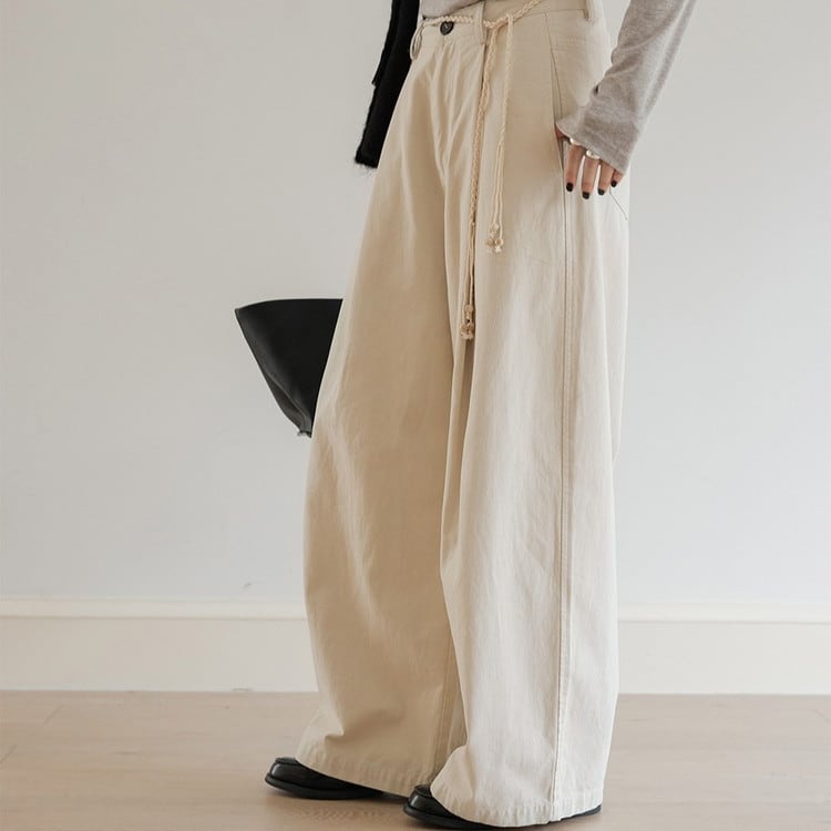 ウォッシュドコットンタックワイドパンツ 2color [am03423]