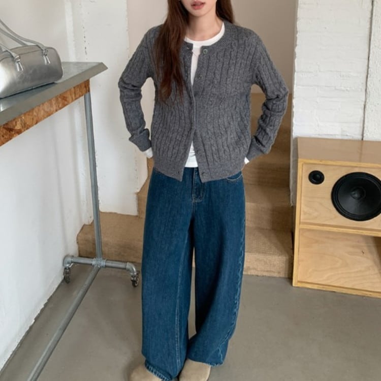 クルーネックケーブルニットカーディガン 2color [am03438]