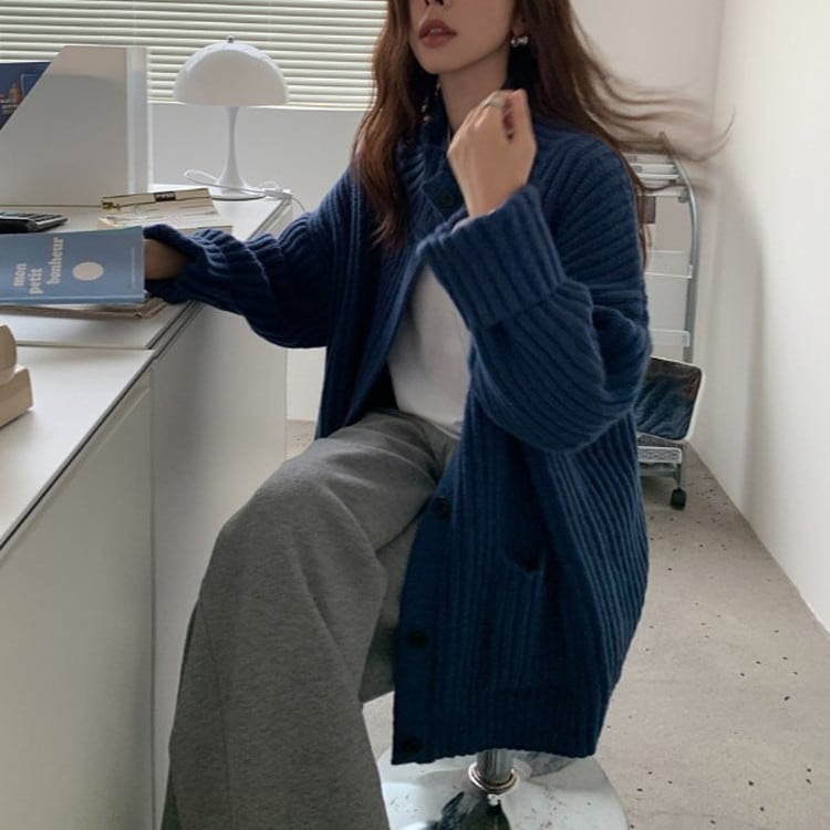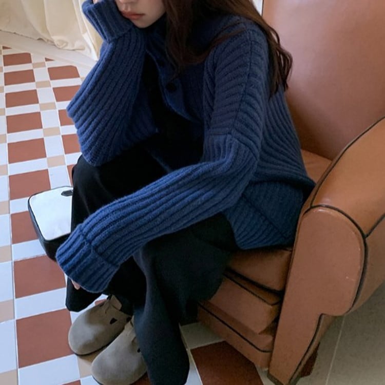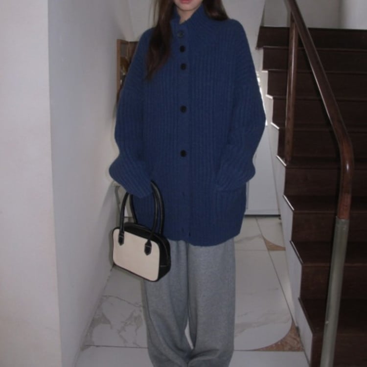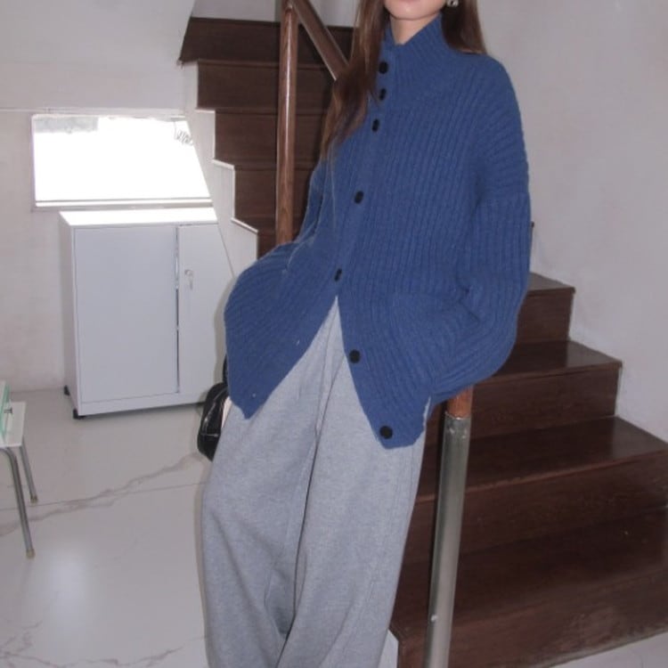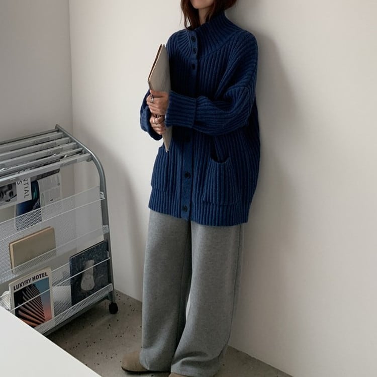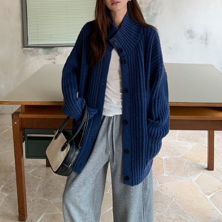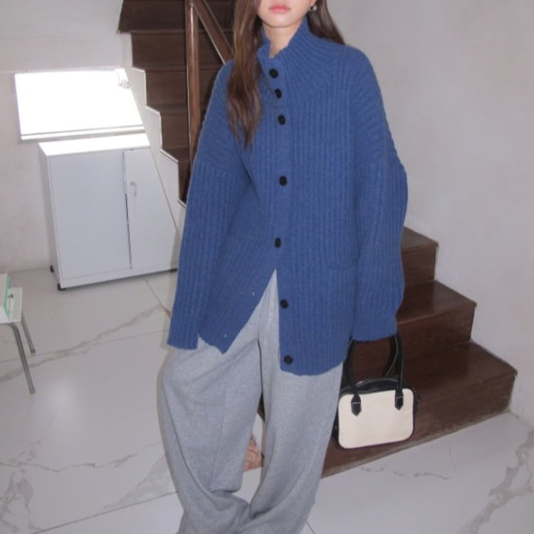 オーバーサイズスタンドカラーワイドリブニットカーディガン [am03439]
