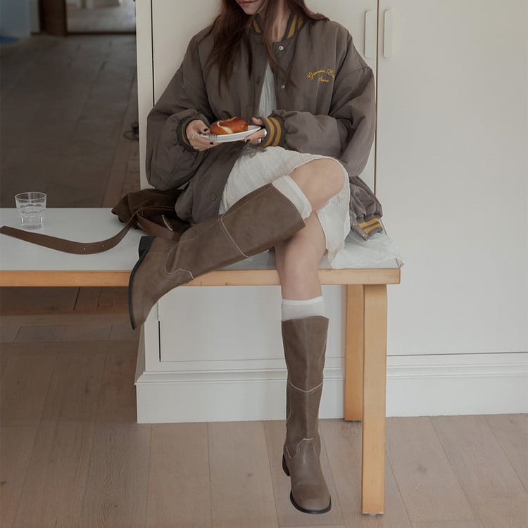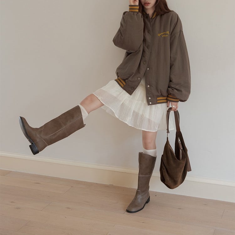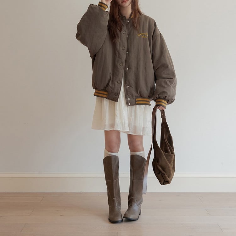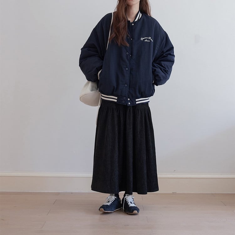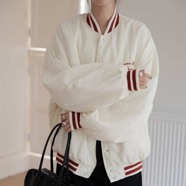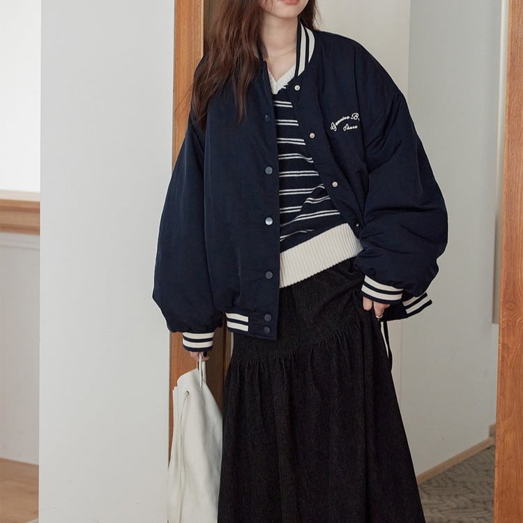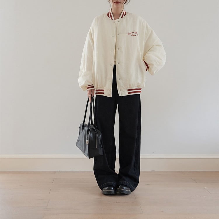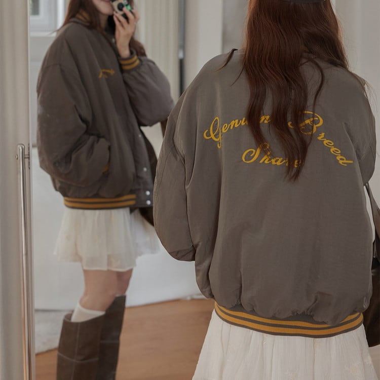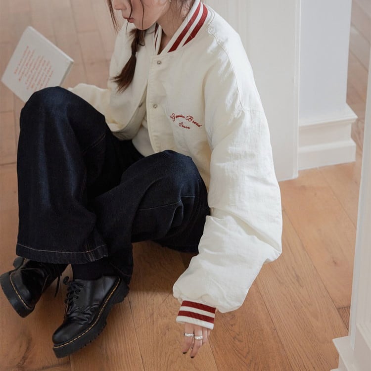 オーバーサイズバイカラーロゴスタジャン 3color [am03442]