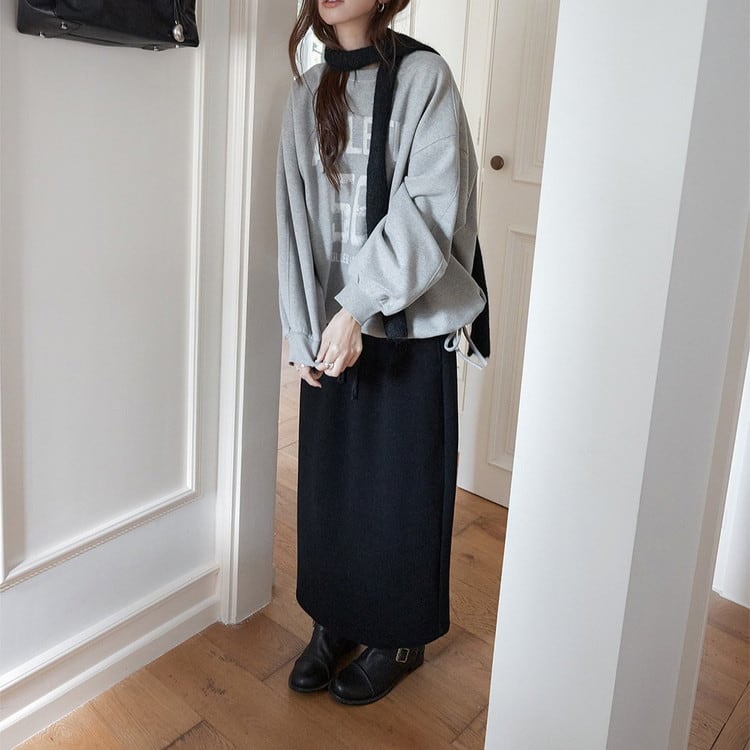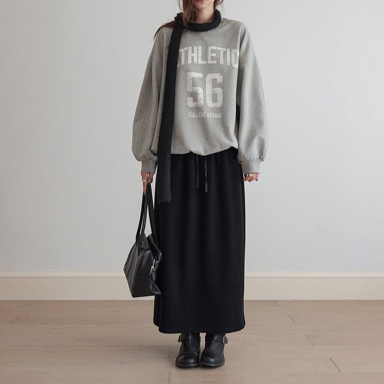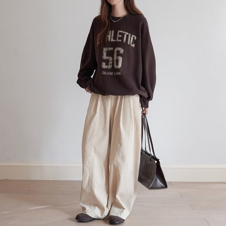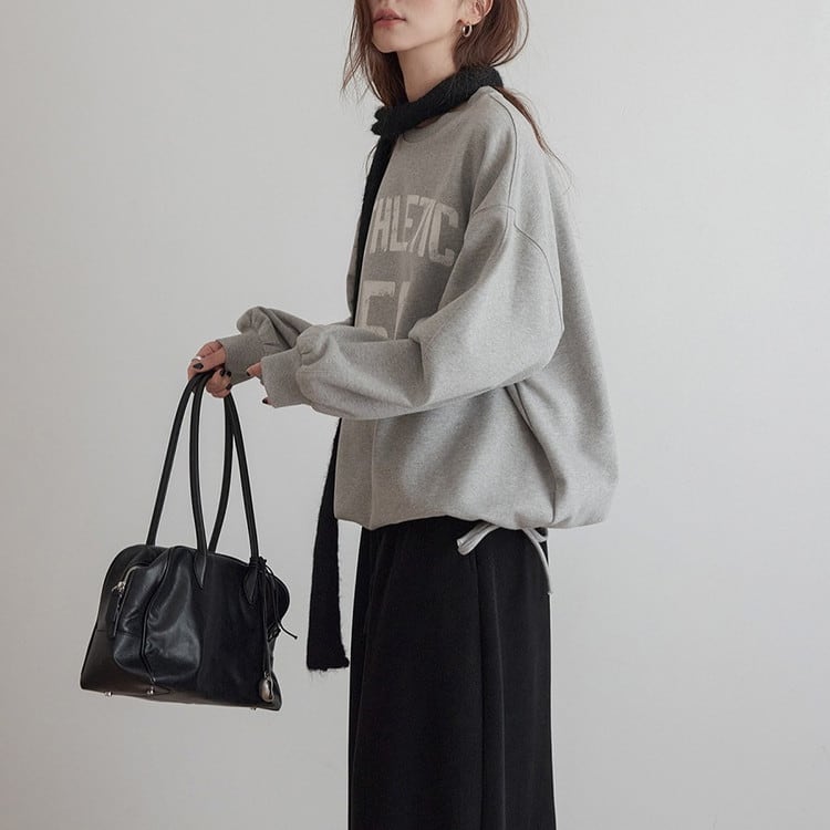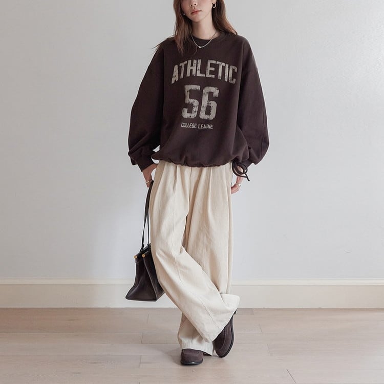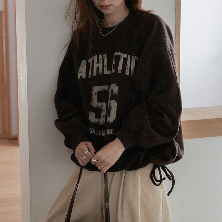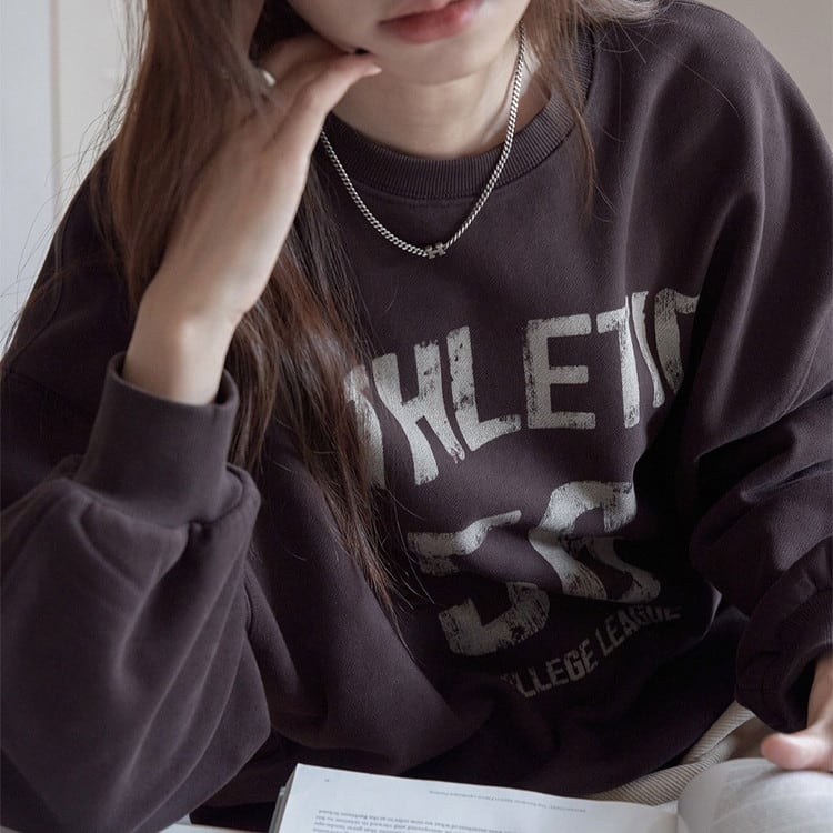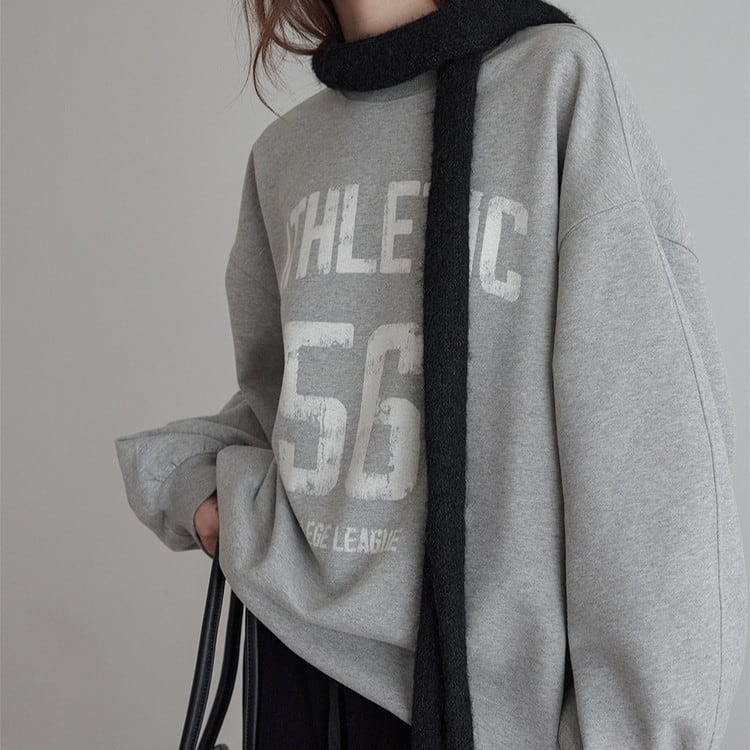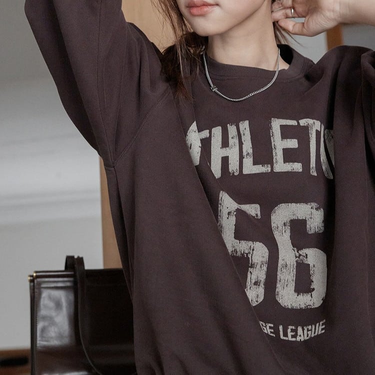 ルーズシルエットクルーネックロゴスウェット 2color [am03445]