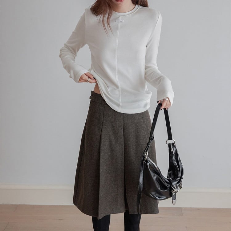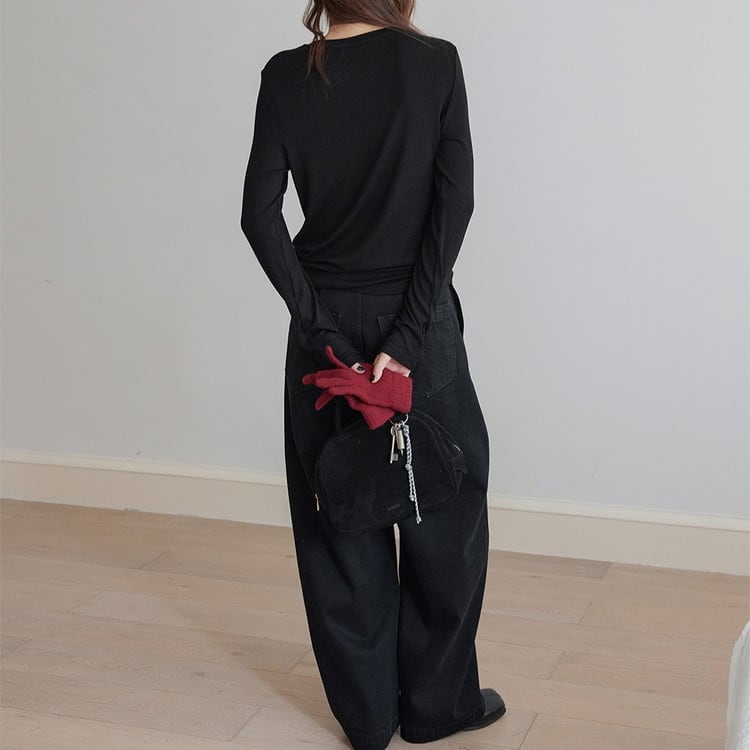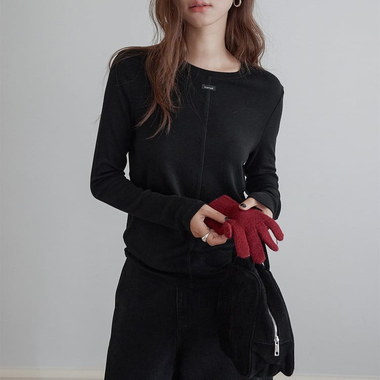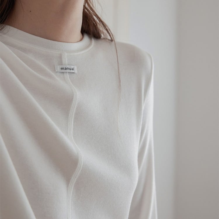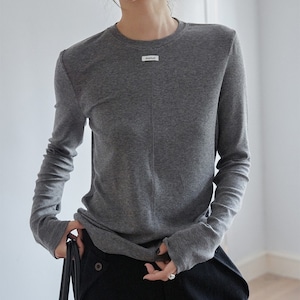スリムフィットワンポイントクルーネックニット 3color [am03447]