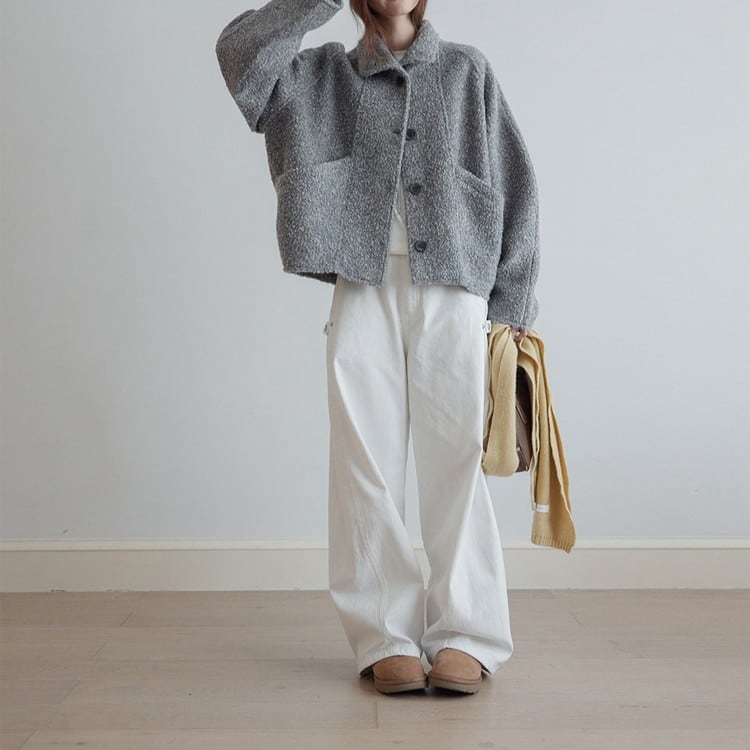 大きめの斜めポケットがアクセントになり、ショート丈なのでバランスの取りやすいアイテムです。