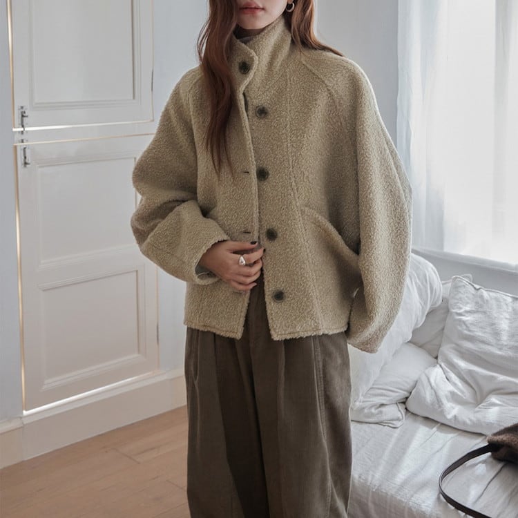 ウールブレンドスタンドカラーショートコート 2color [am03461]