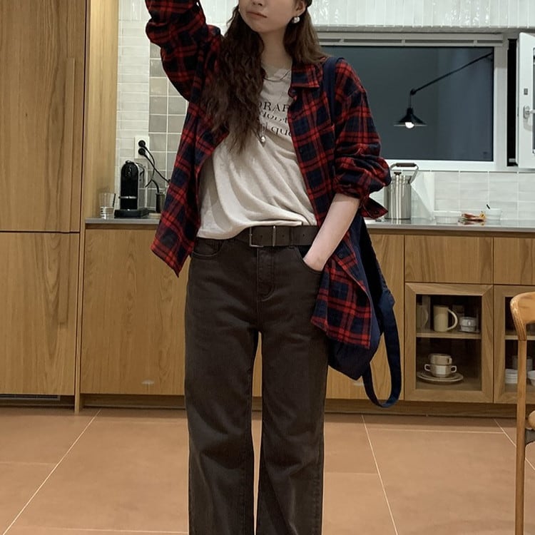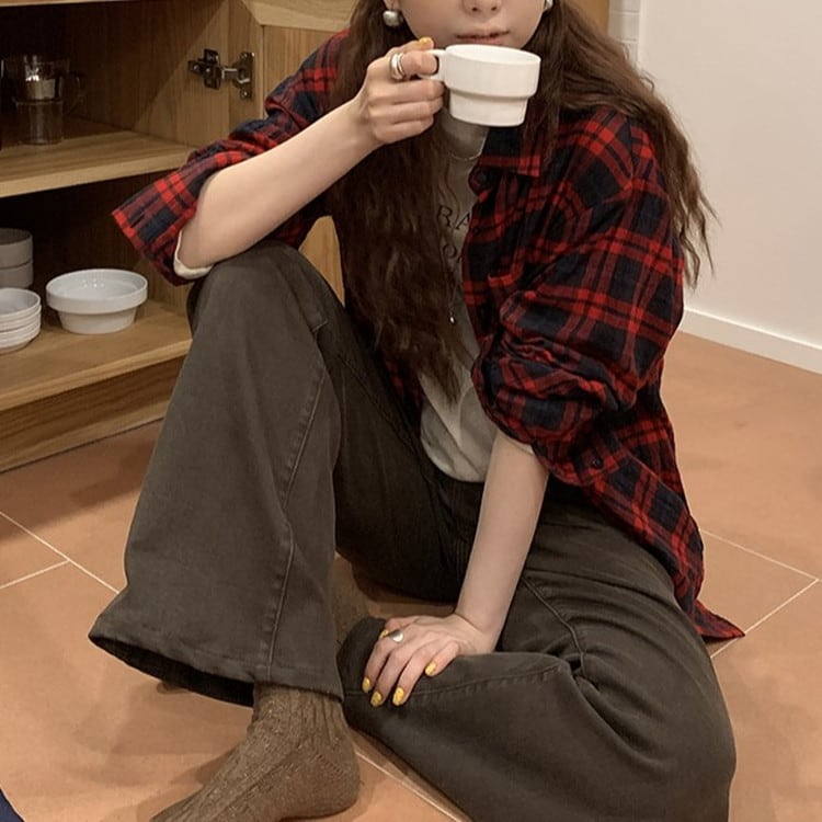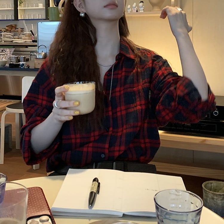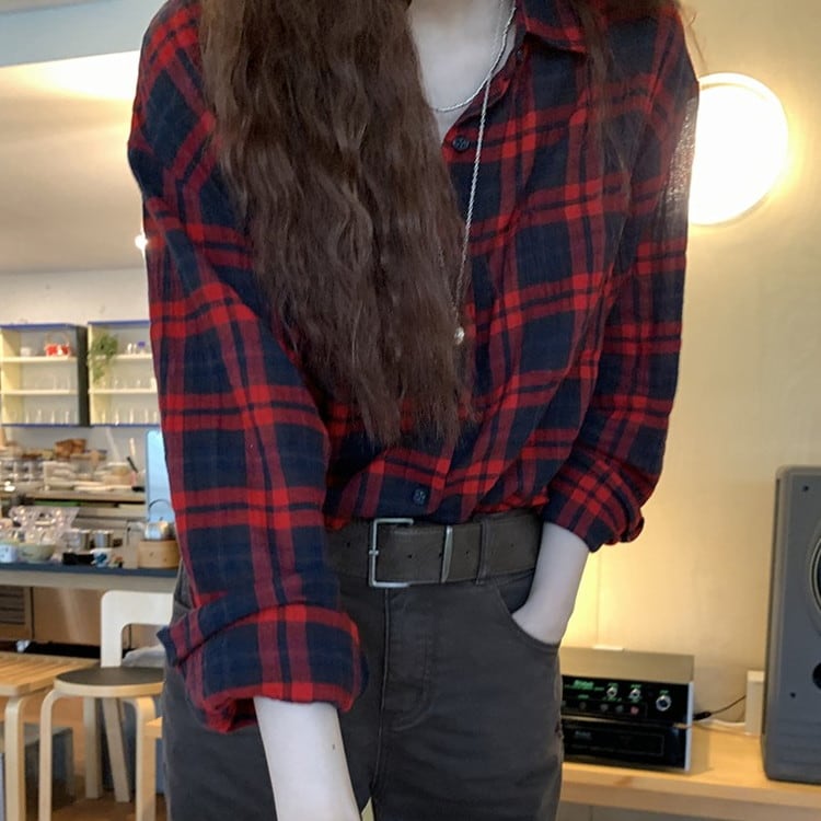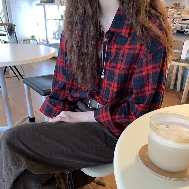 温かみのあるコットンレッドチェックシャツです。
