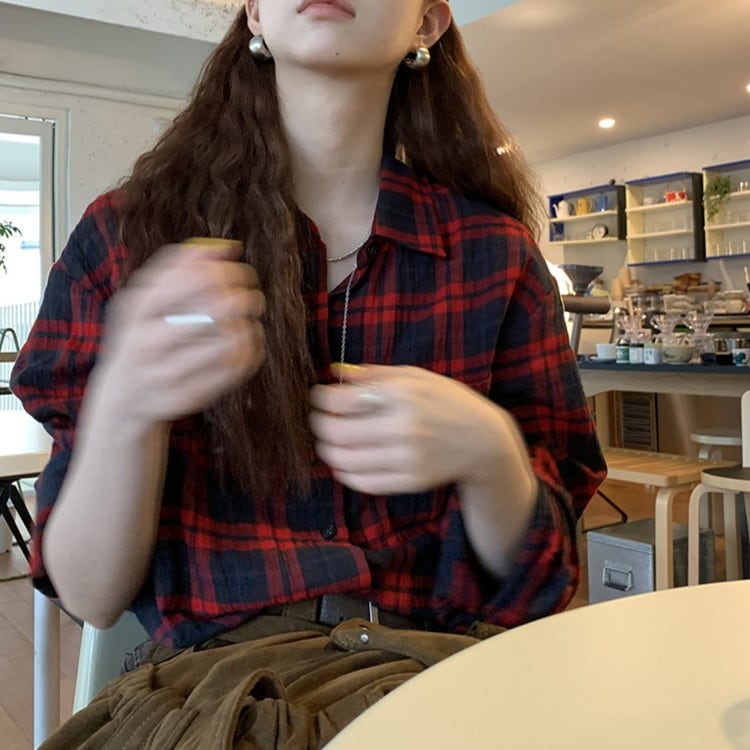 コットンレッドチェックシャツ [am03465]